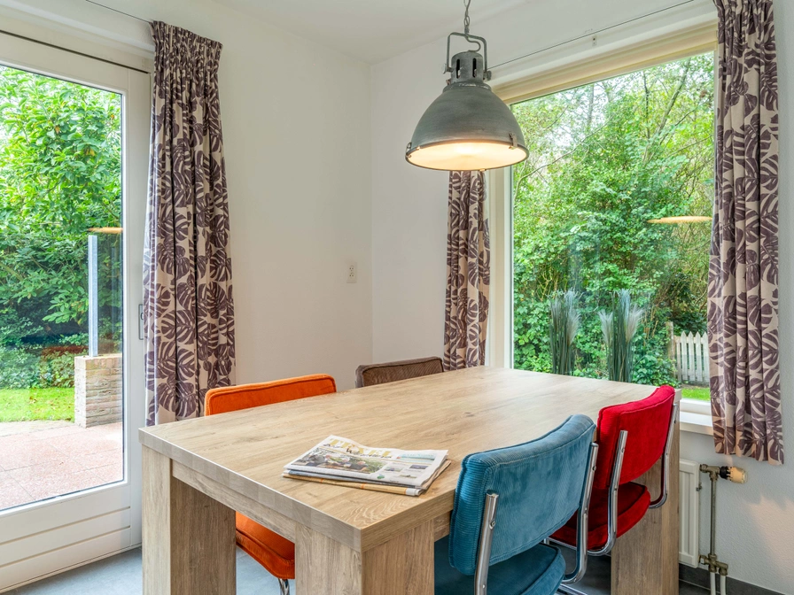 De moderne woonkamer beschikt over een zithoek met TV. Er is een eethoek met een eettafel voor 5 personen. De open keuken is compleet ingericht met diverse apparatuur, zoals een vaatwasser, koelkast, oven en verschillende koffiezetapparaten. Op de eerste etage bevinden zich 2 slaapkamers, een slaapkamer is uitgerust met 3 bedden. Alle slaapkamers zijn voorzien van eenpersoons boxspring bedden. De badkamer bevindt zich op de begane grond en is voorzien van een ruime inloopdouche met rainshower en grote wastafel. Het toilet is apart gesitueerd. De woonruimte staat in directe verbinding met het terras doormiddel van een schuifpui. Het terras op het zuiden is voorzien van tuinmeubilair. De riante tuin (1000m2) is door bomen beschut, volledig omheind en voorzien van een speeltoestel. Het fietsenschuurtje heeft een elektrische aansluiting om de e-bikes op te laden. Wasmachine en wasdroger zijn aanwezig in de hal. Kindermeubilair is te huur tegen betaling. Gratis Wifi. Roken is niet toegestaan. Twee parkeerplaatsen op eigen terrein.