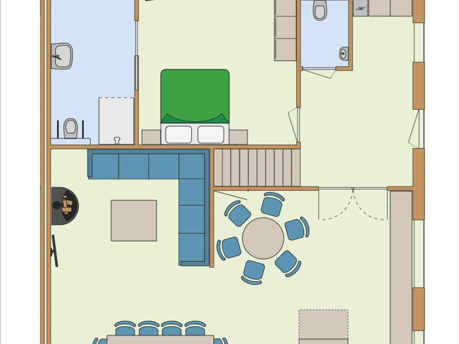 Via de entree kom je in de grote woon/eetkamer met open haard, speeltafel, royale zithoek, tv en ruime eethoek. Er is een woonkeuken met een vaatwasser, magnetron, 2 heteluchtovens, een dubbele inductieplaat, een grote koelkast, een Quooker, een koffiezetapparaat en een uitgebreide keukeninventaris. Op de begane grond is een ruime hal, toilet en een royale slaapkamer. Op de 1e verdieping zijn 3 slaapkamers met elk 2 eenpersoons bedden en elk een eigen badkamer met wellnessdouche, wastafel en toilet. Op de 2e verdieping zijn de vijfde en zesde slaapkamer. Iedere slaapkamer heeft een tv, een ruime kastenwand en een eigen badkamer met wellnessdouche, wastafel en toilet. Alle kamers zijn voorzien van twee eenpersoons boxspring bedden. De bedden kunnen vastgehaakt worden om als twee persoons bed te dienen. Via openslaande deuren kom je vanuit de woonkamer op je terras met terrasmeubilair. Het huis ligt op een prachtig landgoed, omringd door bomen en grenzend aan weilanden.