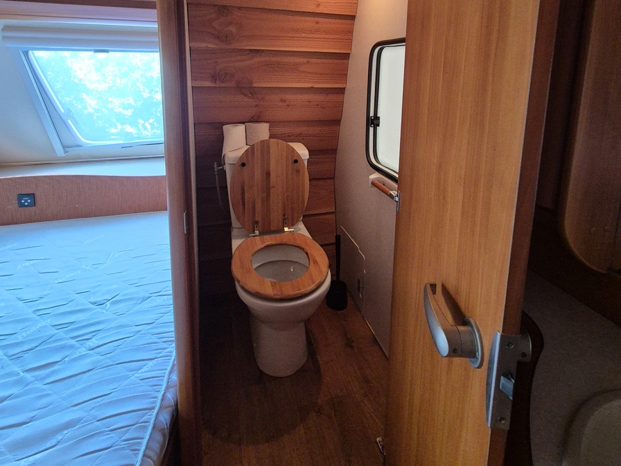 In de oude tuin tussen het groen staat onze grote hobby caravan met ruime voortent. De caravan beschikt over een luxe interieur met 2 tweepersoonsbedden en een toilet. De ruime voortent is voorzien van een keukentje en gezellig zitje. Douchen kun je in de nabijgelegen schuur.