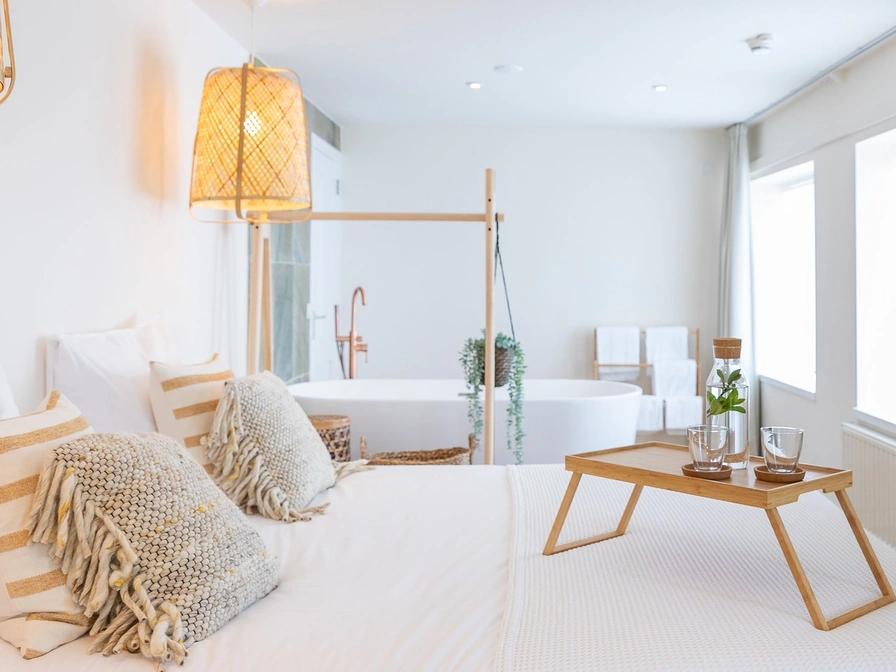 De luxe Tuin Suites met vrijstaand bad, is gelegen aan de zuid-west zijde van onze stolpboerderij. Met eigen opgang vanuit de tuin, een terrasje in de voortuin en een intieme ensuite lounge. De details in de kamer verraden de historie van de boerderij. Via de entree kom je in de ruime kamer met een tweepersoons bed (160 x 200 cm). Badkamer met inloopdouche, vrijstaand ligbad, wastafel en apart toilet. Er is een Smart TV (32 inch), open kast, minibar met een lokaal & bewust assortiment, een waterkoker, slow coffeemaker en verschillende theespecialiteiten. Rond de boerderij is een grote tuin met terrassen waar je als gast heerlijk kunt relaxen.