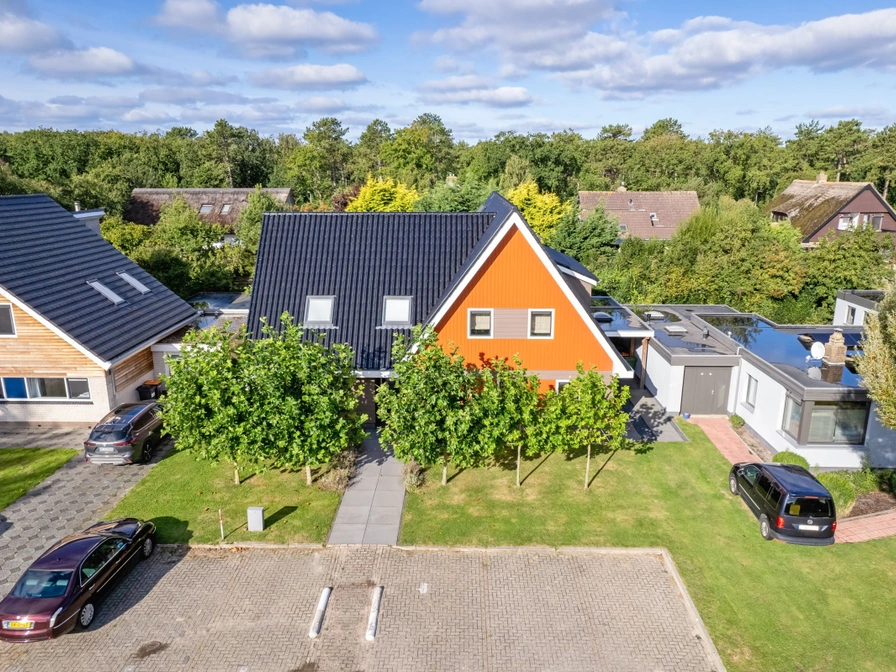 Deze bijzondere vakantiewoning staat in een rustige wijk net buiten De Koog. Het centrum van deze bruisende badplaats maar ook bos, duinen, strand en zee liggen op loopafstand.