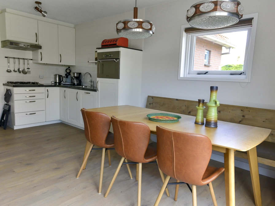 Entree, woonkamer met zithoek, eethoek en tv. Open keuken met vaatwasser, koelkast met vriesvak, magnetron, combi-oven, grill, waterkoker, Senseo en filter koffiezetapparaat. Slaapkamer met 2 eenpersoons bedden. Badkamer met douche, wastafel en toilet. Op de eerste verdieping zijn nog twee slaapkamers met elk 2 eenpersoons bedden en een tweede badkamer met douche, wastafel en toilet. Berging met oplaadpunt voor elektrische fietsen. Je vrijstaande vakantiehuis heeft een ruime tuin met terras en tuinmeubels.