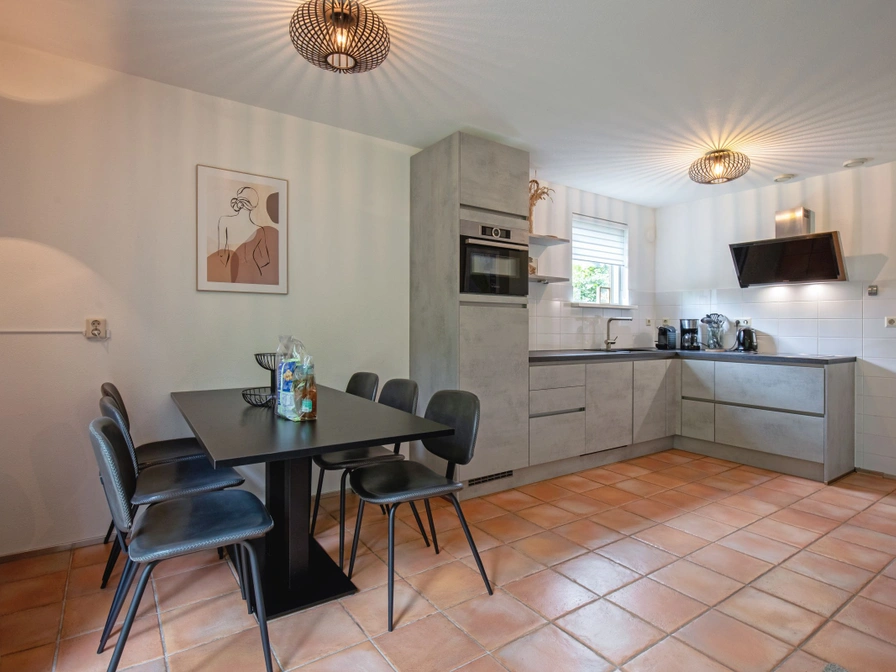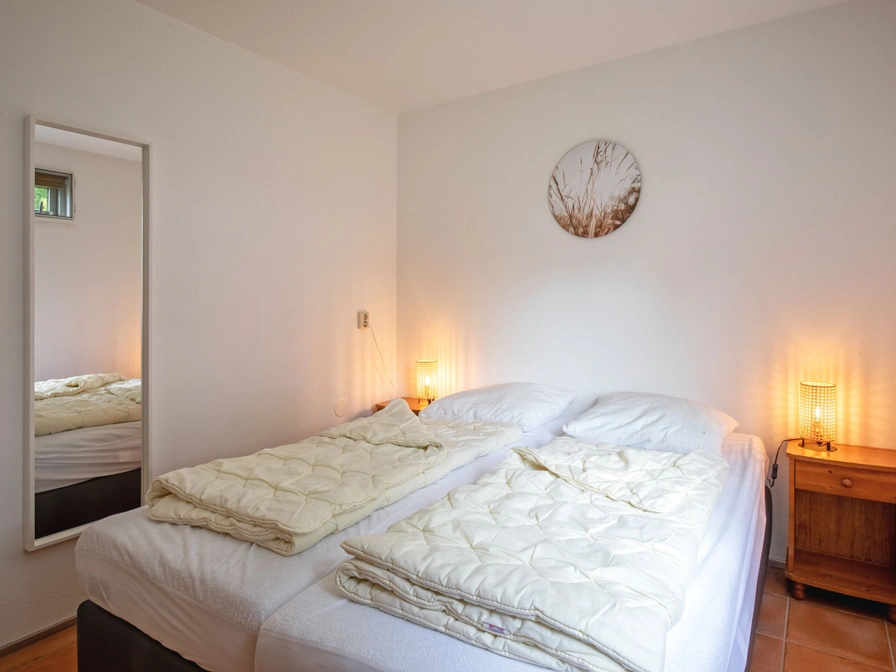 Entree, woonkamer met zithoek, eethoek en tv. Open keuken met vaatwasser, koelkast met vriesvak, magnetron, oven, waterkoker en filterkoffiezetapparaat. Slaapkamer met 2 eenpersoons bedden. Badkamer met douche en wastafel. Separaat toilet. Op de eerste verdieping zijn nog twee slaapkamers met elk 2 eenpersoons bedden en elk een eigen wastafel. Je vrijstaande vakantiehuis heeft een ruime tuin met terras en tuinmeubels.