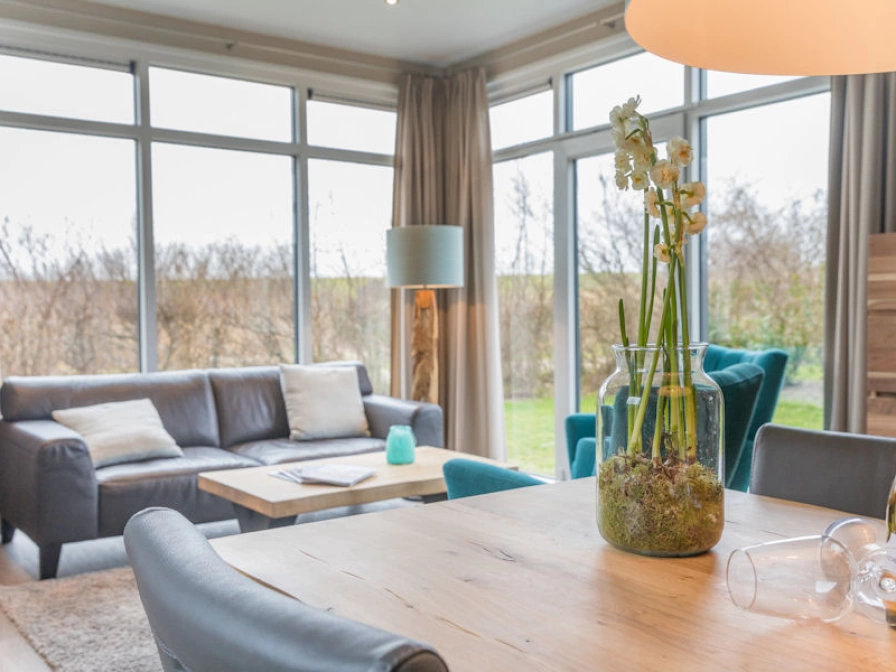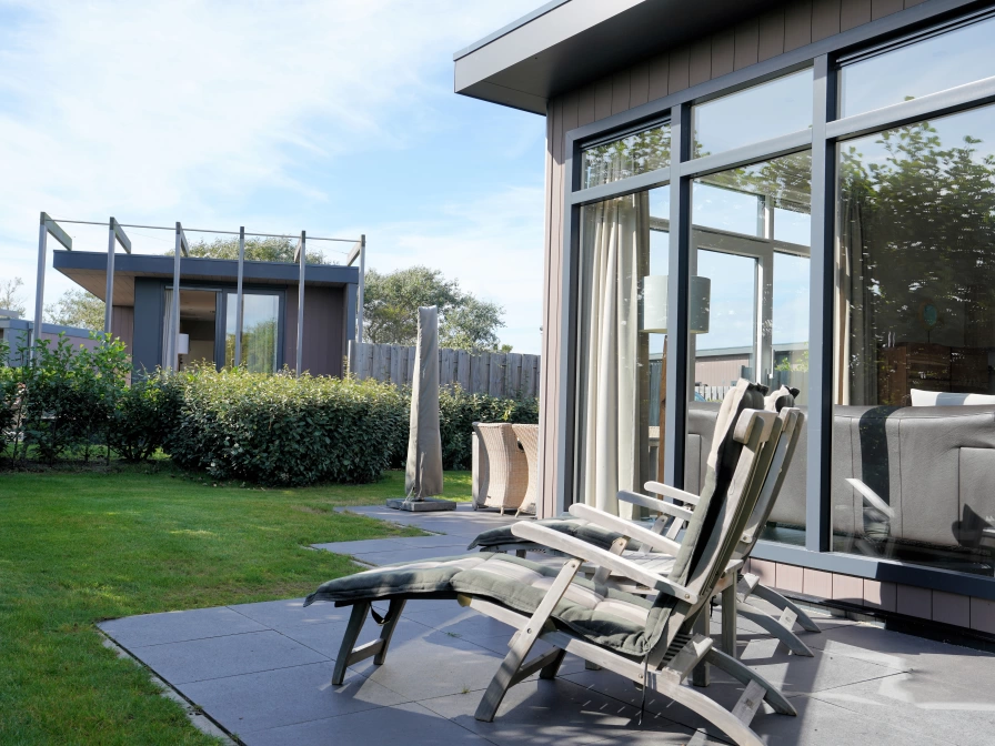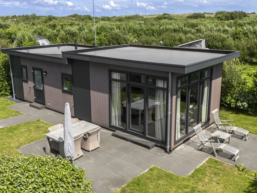 Het chalet is rustig gelegen in de duinen van het park. De open keuken is ingericht met koel-/vriescombinatie, combimagnetron, vaatwasser, broodrooster en koffiezetapparaat. De woonkamer is voorzien van een eethoek en een zithoek met lcd-tv. Er zijn twee slaapkamers met elk twee eenpersoons boxspringbedden. De badkamer heeft een douche, wastafel en toilet. Het chalet heeft een terras. Tuinmeubilair is aanwezig.