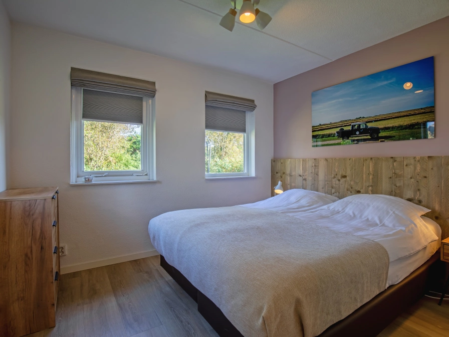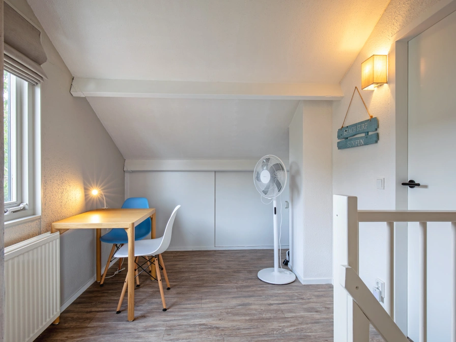 Ruime, lichte woonkamer met eethoek, zithoek, smart-TV met gratis Netflix, Sonos speaker, spelletjes en hoog rendement houtkachel. Kleine, halfopen keuken met, blender, combi-magnetron, 4-pits gasfornuis en vaatwasser. Voor de koffieliefhebber: Moccamaster (filterkoffiezetapparaat), percolators, handmatige koffiemolen en melkopschuimer. Slaapkamer met tweepersoons boxspringbed (160x210). Badkamer met ligbad, wastafel en toilet. Op de eerste verdieping zijn 2 slaapkamers met elk 2 eenpersoons boxspringbedden (80x210). Overloop met bureautje. Badkamer met wastafel, douche en toilet, toegankelijk vanuit beide slaapkamers. Alle slaapkamers zijn voorzien van rolhorren, vouwgordijnen en verduisterende plisségordijnen. Op de bedden premium matrassen en vierseizoens donzen dekbedden. In de zomerperiode staat op elke slaapkamer een stille ventilator. Schuifpui voorzien van rolhor naar het terras op het zuiden met loungemeubelen, eettafel met bank en stoelen en buitenhaard. Ruime tuin rondom met afsluitbaar tuinhuis. Zitje op het westen voor de ondergaande zon. Op het tweede terras aan de noordzijde staat een eettafel met bank en stoelen. Voor ouders van jonge kinderen goed te weten dat de tuin grenst aan een ondiepe sloot zonder hekje.