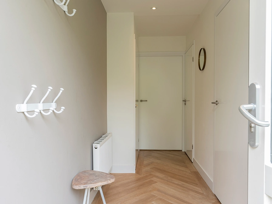 Entree, woonkamer met een zithoek, eethoek, televisie en een open haard. Open keuken met onder andere een vaatwasser en magnetron. Er zijn 3 slaapkamers waarvan 1 op de begane grond. De badkamer is voorzien van een douche, wastafel en toilet. Deze geschakelde bungalow heeft een grote tuin met terras en tuinmeubelen.