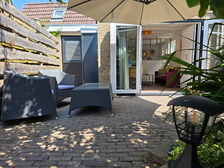 De gezellige woonkamer met zithoek is voorzien van een TV en heeft openslaande deuren naar een zonnig terras. Er is een eettafel voor 2 personen. De open keuken is uitgerust met o.a. een vaatwasser, een hete lucht oven, 2- pits inductie kookplaat en diverse koffiemachines. Het slaapgedeelte is voorzien van een twee persoons boxspringbed van 140x200 en een wastafel. De badkamer is uitgerust met douche en toilet. De kledingkast staat in de woonkamer. De volledig omheinde tuin met terras is voorzien van tuinmeubelen en een parasol. In het tuinhuisje staat een wasrek.
