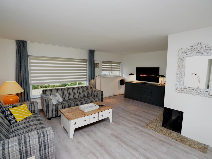 De royale vakantiewoning met groot terras en afgesloten tuin heeft vijf slaapkamers, waarvan een op de begane grond met twee eenpersoons-boxspringbedden en vier slaapkamers op de eerste etage. Van de slaapkamers boven hebben er twee een eenpersoonsbed en is er een slaapkamer met tweepersoonsbed (één matras) en een slaapkamer met twee eenpersoonsbedden. Bij drie slaapkamers op de etage is een eigen wastafel. Er zijn acht eenpersoonsdekbedden aanwezig en alle slaapkamers zijn voorzien van ruime hang- en legkasten. De badkamer beneden ligt direct naast de slaapkamer en heeft een ligbad, douche, toilet en wastafel. Ook is er beneden nog een extra toilet. De badkamer op de eerste verdieping heeft een bad, douche en een wastafel. Ook op de etage is een extra toilet aanwezig. Het huis heeft een gashaard, tv met kabelaansluiting, stereo, blue ray-speler en draadloos internet. De keuken is volledig ingericht met o.a. koelkast, vijf-pits keramische kookplaat, elektrische oven, Nespresso, Senseo en filterkoffiemachine. In de grote berging, grenzend aan de keuken, staat de afwasmachine, een wasmachine, een wasdroger, een extra vriezer en een combimagnetron. Ook is er een garage waarin o.a. fietsen kunnen worden neergezet.