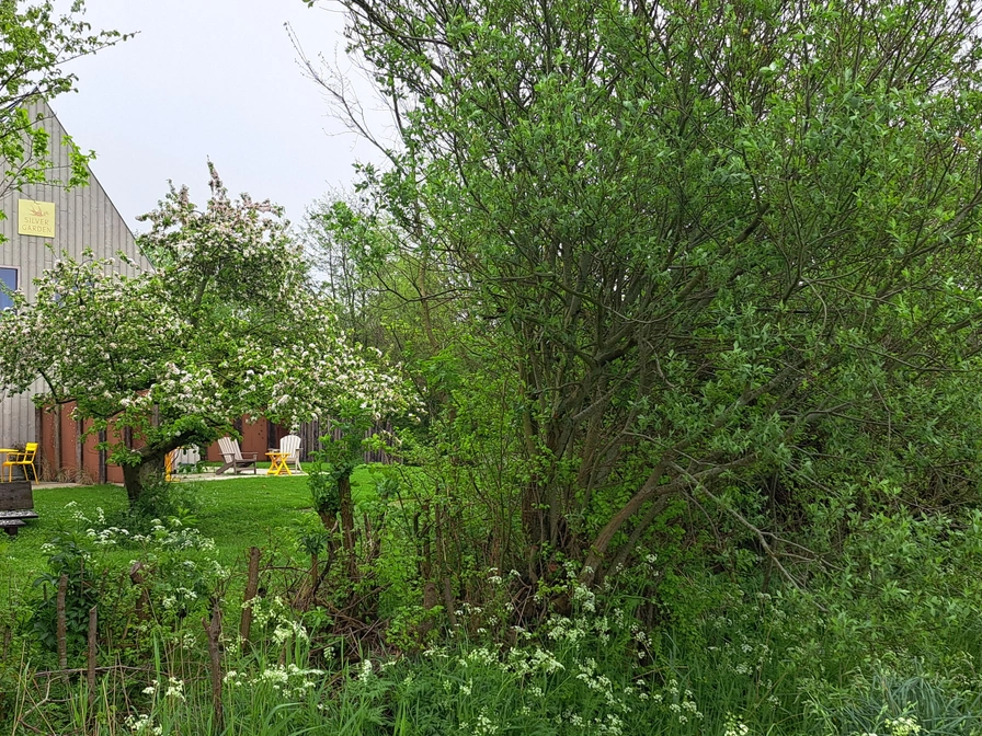 Silver Garden is een kleinschalige B&B midden op Texel en ligt in een rustige, landelijke omgeving. Er zijn twee unieke Hideaways met uitzicht op het weidse landschap. Hier geniet je van rust en ruimte en nachten met duizenden sterren. Bij aankomst staat éénmalig een starters ontbijttrommel voor je klaar met heerlijk plantaardig broodbeleg, waar je de eerste twee dagen zelf je ontbijt uit kunt maken. Je wandelt vanaf hier direct langs de weilanden met paarden, koeien en schapen. Of pak de fiets en ontdek het eiland. Op 10 minuten fietsafstand ligt Oosterend; een dorp met schilderachtige straatjes en oude gevels. Het strand is 8 km fietsen. De groene Waddenkant van Texel ademt een andere sfeer dan de west- en noordkant van het eiland en bereik met 15 minuutjes fietsen. Langs de dijk liggen belangrijke broed- en foerageergebieden voor talloze vogels. Op het terrein van Silver Garden vind je verschillende gezellige privé-zitjes. De binnentuin is een heerlijke lounge-zitruimte met aandacht voor o.a. vlindersen lieveheersbeestjes. Elke Hideaway heeft zijn eigen privé terras en buitendouche met warm en koud water (maart-november).