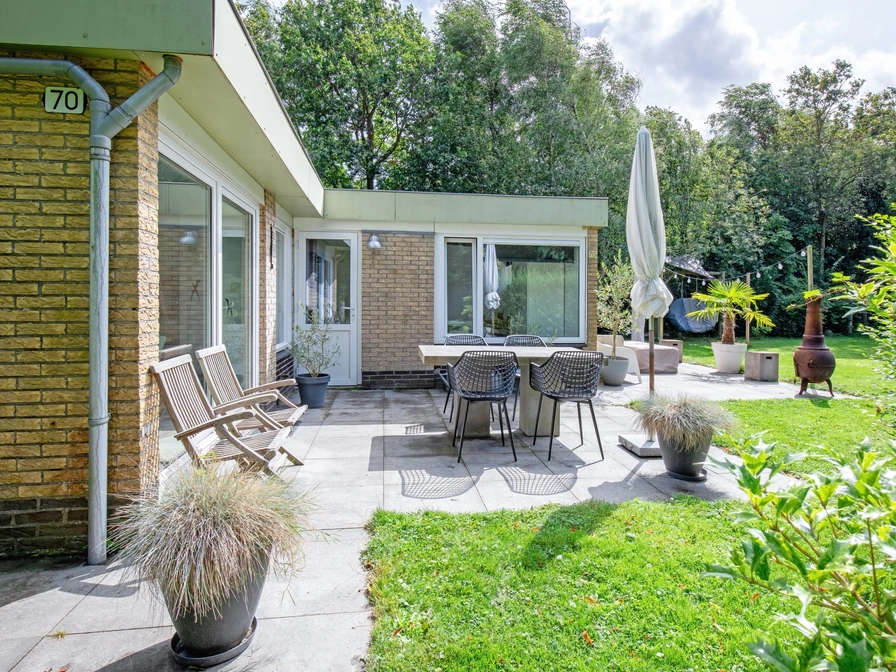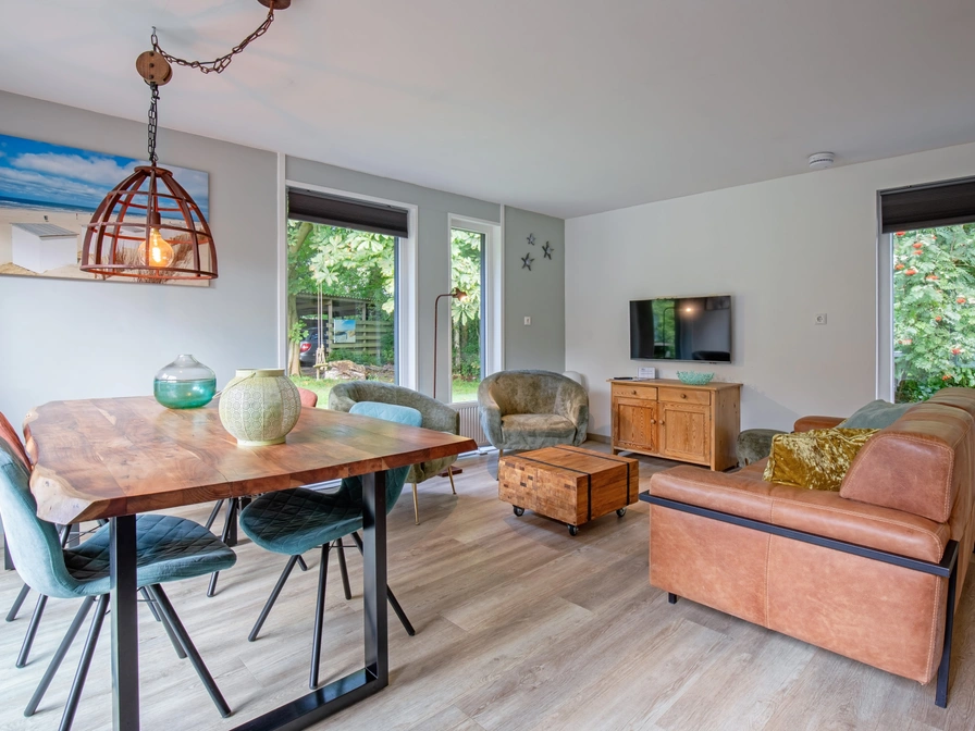 Dit vakantiehuis ligt op het rustige bungalowpark Slufterduin, dichtbij De Slufter. Het bekendste natuurgebied van Texel staat in open verbinding met zee, waardoor zoutwater dwars door het gebied stroomt en er bijzondere planten groeien die tegen zout kunnen. Het bungalowpark is speels opgezet, met verschillende woningtypes en kleine slingerpaden. Door De Slufter wandel je in 20 minuten naar het strand. Vanaf je vakantieadres is het 6 kilometer naar De Cocksdorp, het meest noordelijke dorp op Texel. Badplaats De Koog ligt ook op 6 km fietsen, maar dan naar het zuiden. Naar beide dorpen lopen mooie fietsroutes door de duinen en je vindt er winkels, terrassen en restaurants. In de directe omgeving vind je een restaurant (750m) en diverse attracties, zoals het vliegveld, paracentrum en ijsboerderij Labora.