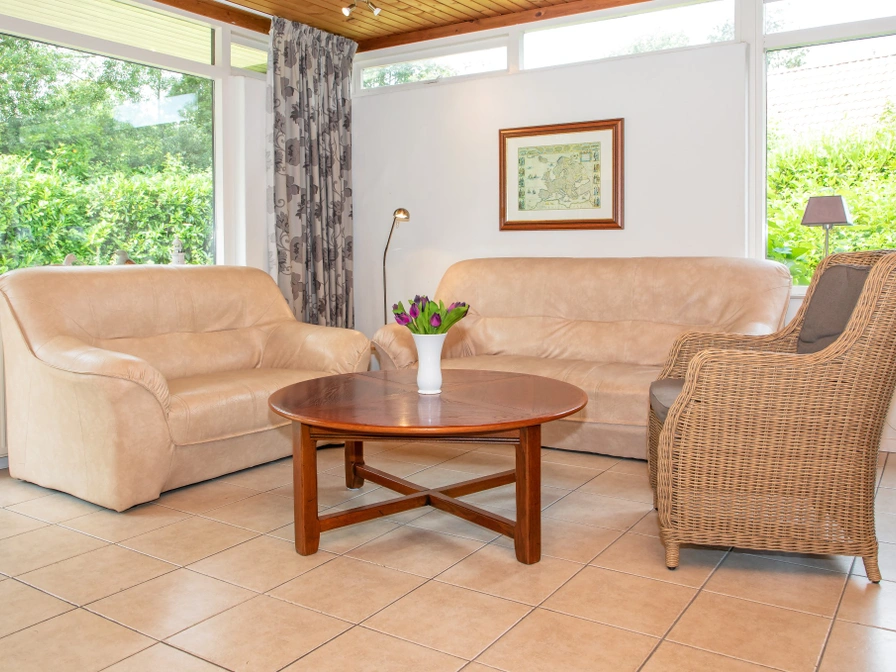 De woonkamer van deze vrijstaande bungalow is voorzien van vloerverwarming en heeft een zithoek met tv en eethoek. De open keuken is ingericht met een koelkast met vriesvak, vaatwasser, magnetron, oven, filter koffiezetapparaat, broodrooster en waterkoker. Er zijn drie slaapkamers met in totaal 4 eenpersoons bedden en een stapelbed. De badkamer heeft een douche en wastafel. Het toilet is separaat. Deze bungalow heeft een tuin met terras. Tuinmeubilair is aanwezig. Fietsenschuur bij de bungalow is voorzien van stroomaansluiting