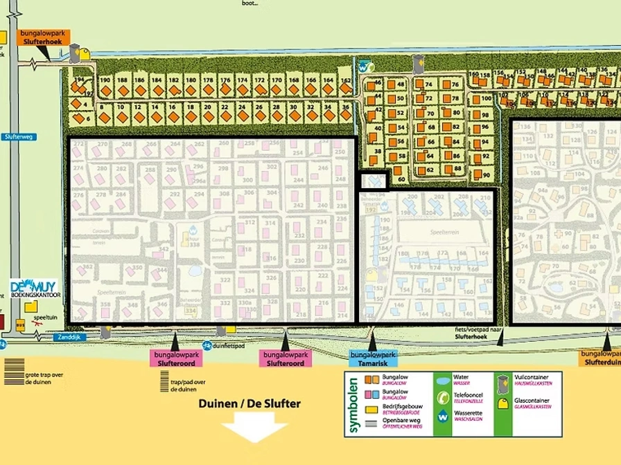 Dit vakantiehuis ligt op het rustige bungalowpark Slufterhoek, in het noorden van Texel. Je verblijft hier vlakbij natuurgebied De Slufter, waar de zee vrij spel heeft en bijzondere planten groeien. Door De Slufter wandel je in 20 minuten naar het uitgestrekte Noordzeestrand. Ook natuurgebied De Muy ligt dichtbij. Hier kun je prachtige wandelingen maken. Vanaf je vakantieadres is het 6 kilometer naar De Cocksdorp, het meest noordelijke dorp op Texel. Badplaats De Koog ligt ook op 6 km fietsen, maar dan naar het zuiden. Naar beide dorpen lopen mooie fietsroutes door de duinen en je vindt er winkels, terrassen en restaurants. In de directe omgeving vind je een restaurant (750m) en diverse attracties, zoals het vliegveld, paracentrum en ijsboerderij Labora.