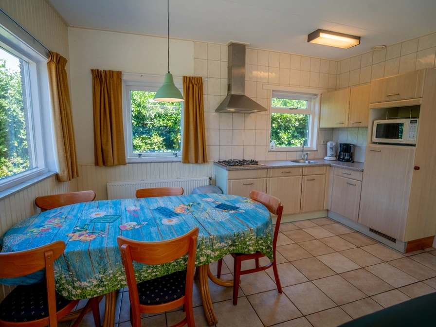 De woonkamer van deze vrijstaande bungalow heeft een zithoek met tv en radio/dvd-speler. Er is ook een eethoek. De keuken is ingericht met combimagnetron, vaatwasser, koffiezetapparaat en Senseo. Er zijn drie slaapkamers waarvan twee met 2 eenpersoons boxspringbedden. De derde slaapkamer heeft een stapelbed. De badkamer heeft een douche. Er is een apart toilet. Deze bungalow heeft een grote tuin met een beschut terras. Tuinmeubilair is aanwezig.