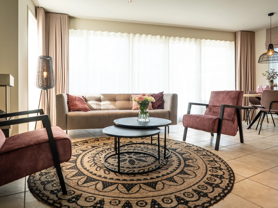 De woonkamer van deze vrijstaande bungalow heeft een zithoek met siergashaard, tv en audioset. De open keuken is voorzien van gaskookplaat, vaatwasser, koelkast met vriesvak, combimagnetron, koffiezetapparaat, waterkoker en broodrooster. Er staat ook een eethoek. In de berging staan een wasmachine en wasdroger. Er zijn twee slaapkamers met elk twee 1-persoons boxspringbedden. Er is een badkamer met ligbad, aparte douche en wastafel. Het toilet is apart. Deze woning heeft een ruime tuin met terras. Tuinmeubilair is aanwezig. Op de bedden liggen synthetische dekbedden. Er is vloerverwarming.