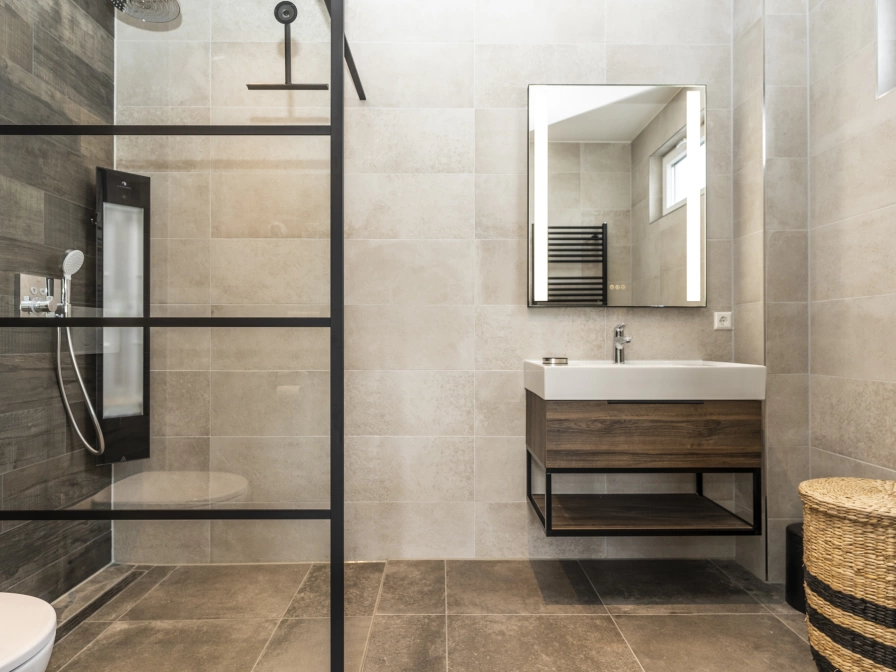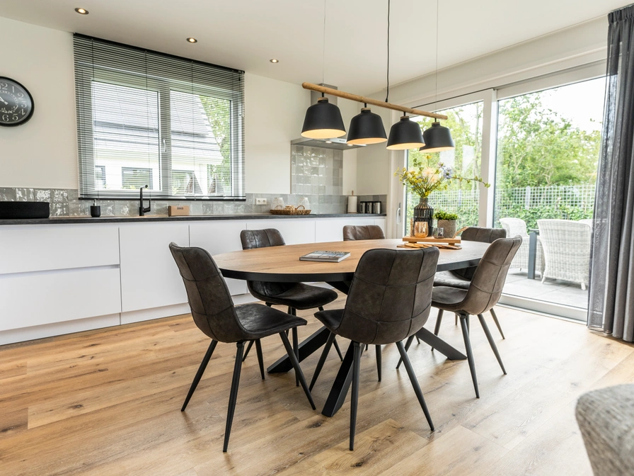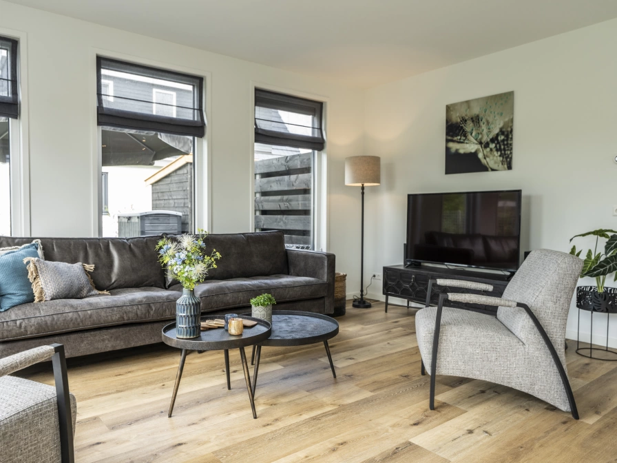 De woonkamer van deze vrijstaande villa heeft een eethoek en een zithoek met kabel-tv en audioset. De open keuken is voorzien van inductiekookplaat, koelkast met vriezer, afwasmachine, magnetron, oven, koffiezetapparaat, Nespresso, waterkoker en broodrooster. Er is een ruime hal met toilet. In de berging staan een wasmachine en wasdroger. Op de begane grond is 1 slaapkamer met twee 1-persoons boxspringbedden en een eigen badkamer met douche, toilet en wastafel. Op de bovenverdieping zijn 2 slaapkamers met elk twee 1-persoons boxspringbedden. Er is een badkamer met whirlpool, sunshower en wastafel. Er is een apart toilet. De vloeren worden verwarmd via een warmtepomp. Deze woning heeft een ruime tuin met terras. Tuinmeubilair is aanwezig. Op de bedden liggen synthetische dekbedden.