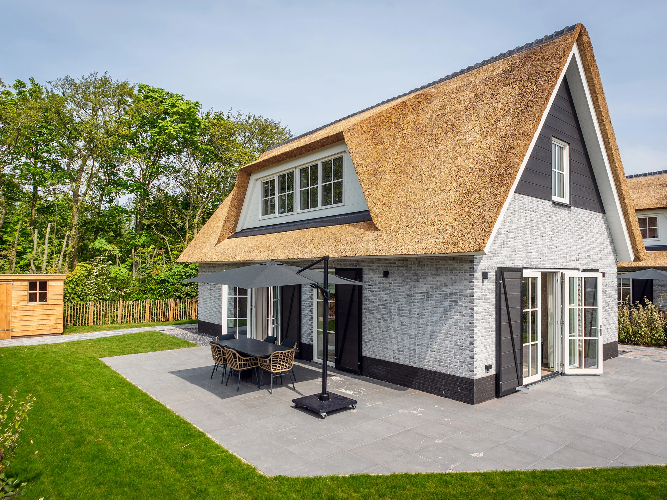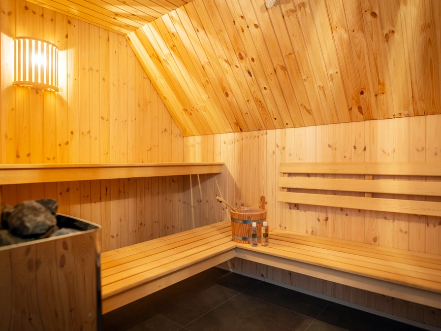 De woonkamer van deze vrijstaande villa heeft een eethoek en zithoek met kabel-TV en audio set. Er is een ruime hal met toilet. De keuken is voorzien van inductiekookplaat, koelkast met vriezer, afwasmachine, magnetron, oven, koffiezetapparaat, Nespresso, Quooker en broodrooster. In de berging staan een wasmachine en een wasdroger. Op de begane grond is een slaapkamer met twee eenpersoons boxspring bedden en een eigen badkamer met luxe stoomcabine, douche, toilet en wastafel. Op de bovenverdieping zijn twee slaapkamers met ieder twee eenpersoons boxspring bedden. Er is een badkamer met ligbad, douche en wastafel, apart toilet en een sauna. Deze luxe villa heeft een ruime tuin met terras op het zuiden. Tuinmeubilair is aanwezig.
