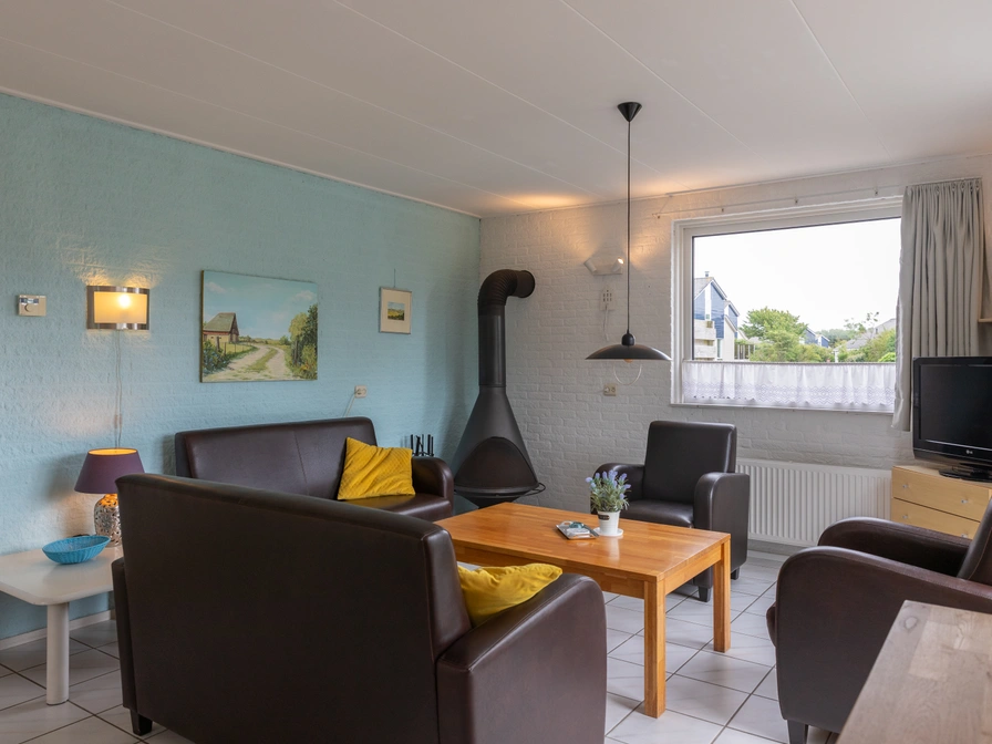 De lichte woonkamer van dit vakantiehuis heeft een zithoek met digitale tv, dvd-speler, radio en een open haardkachel. Een eethoek en de open keuken is ingericht met een magnetron, een koffiezet-apparaat én een senseo-apparaat. Op de begane grond bevindt zich een slaapkamer met 2 eenpersoons boxspringbedden en een wastafel. De badkamer heeft een ligbad, aparte douche en toilet. In de berging staan een wasmachine en vaatwasser. Op de bovenverdieping bevinden zich twee ruime slaapkamers met elk 2 eenpersoons boxspringbedden en een wastafel. Ook is er een 2e toilet aanwezig. Dit vakantiehuis heeft een grote tuin met een ruim en beschut terras.