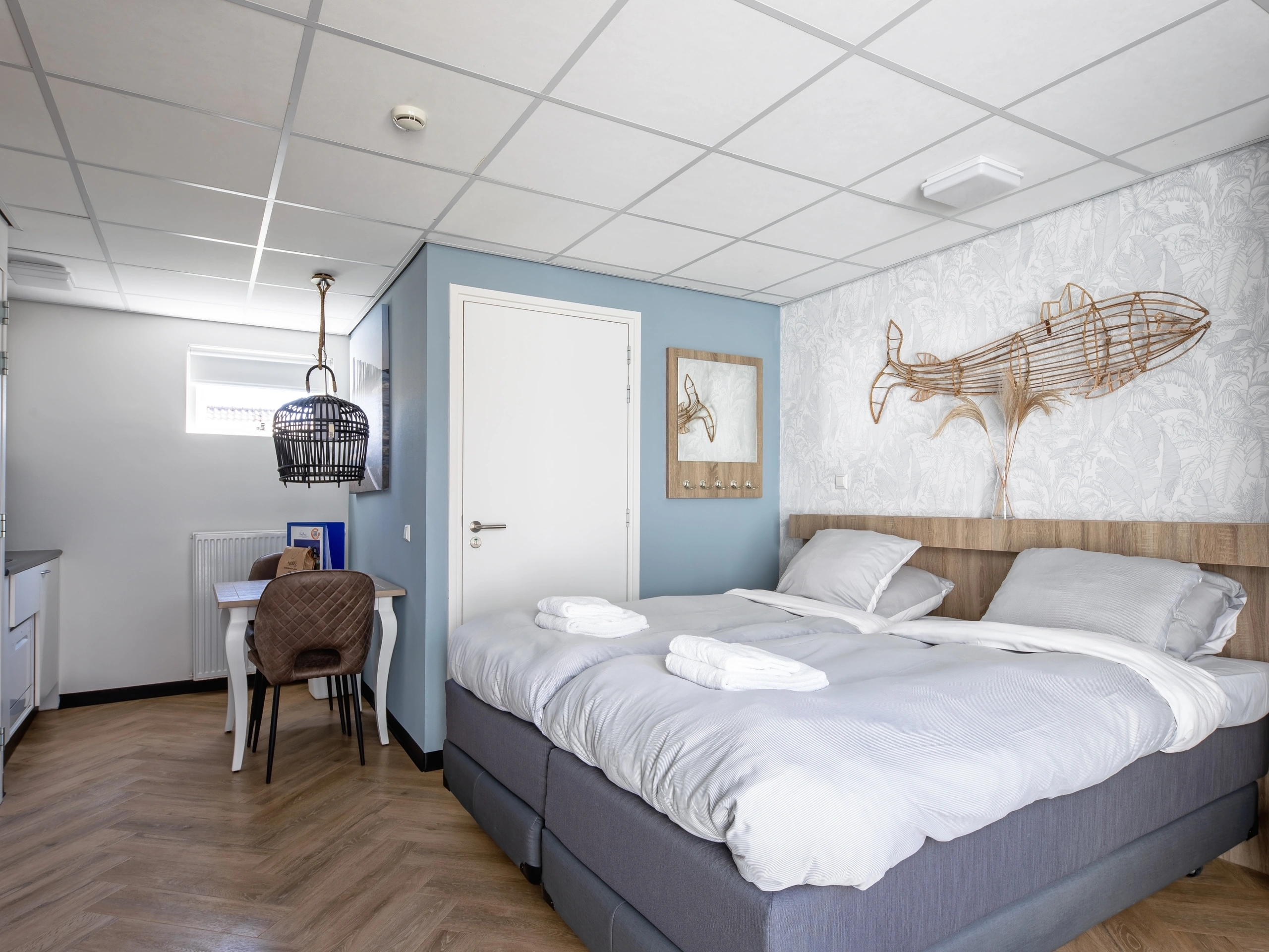 De Juttersuite ligt op de eerste verdieping. De suite heeft 2 eenpersoons boxspringbedden, een flatscreen tv en een eethoek. De open pantry is ingericht met een koelkast met vriesvak, vaatwasser, waterkoker en een Nespresso apparaat. De badkamer heeft een douche, wastafel en toilet. Deze suite heeft een Frans balkon.
