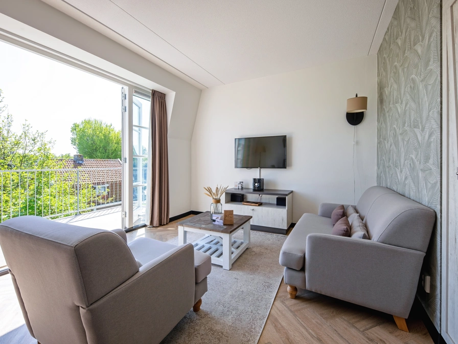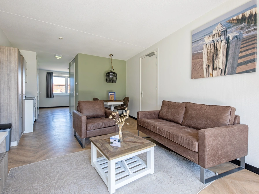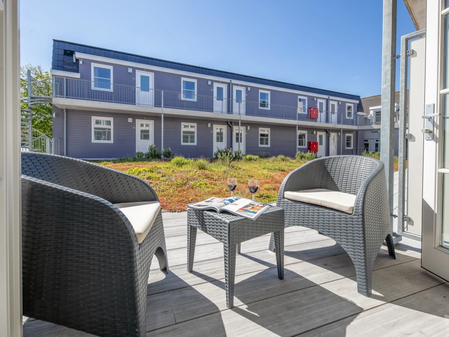 Type Duynsuite is gelegen op de eerste of tweede verdieping. De suite heeft een zithoek met flatscreen-tv en een eethoek. Er staan 2 eenpersoons boxspringbedden. De open pantry is ingericht met een koelkast met vriesvak, vaatwasser, waterkoker en Nespresso apparaat. De badkamer heeft een douche, wastafel en toilet. Deze suite heeft een terras aan de daktuin of balkon op het zuiden.