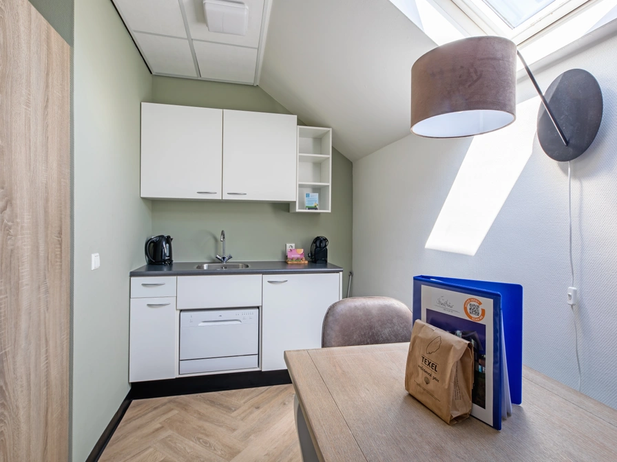 Gelegen in het centrum van De Koog Suites met zithoek en eettafel Overdekte gratis parkeerplaats aanwezig voor auto's en fietsen Gratis gebruik van sauna en zonnebank