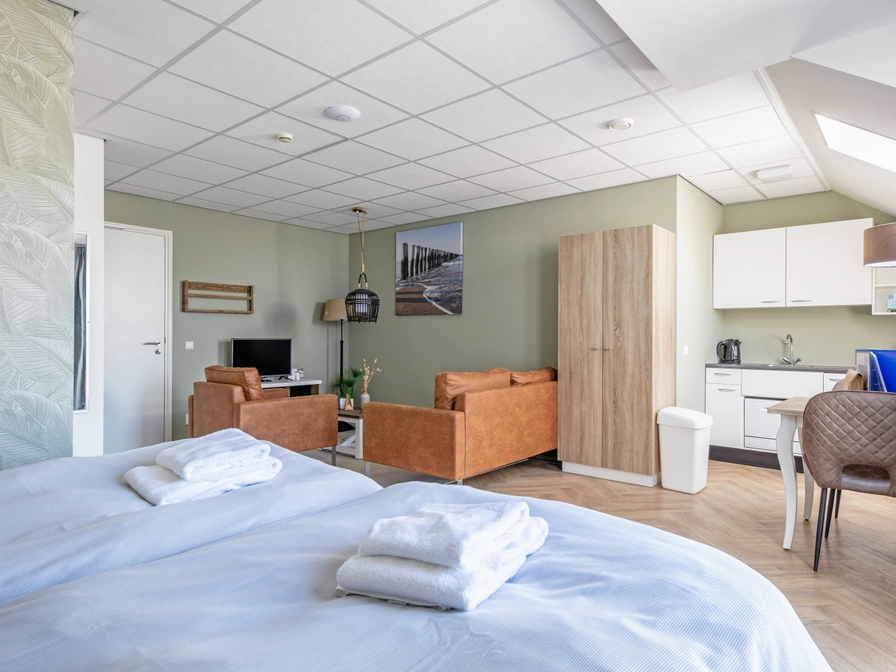 In de suite is geen kookgelegenheid. Deze kamer wordt zonder ontbijt aangeboden. Ontbijt kan bijgeboekt worden. De inrichting van de suites kan onderling verschillen. Inbegrepen in de servicekosten: opgemaakte bedden bij aankomst en een handdoekenpakket. De suite wordt tijdens je verblijf niet schoongemaakt.