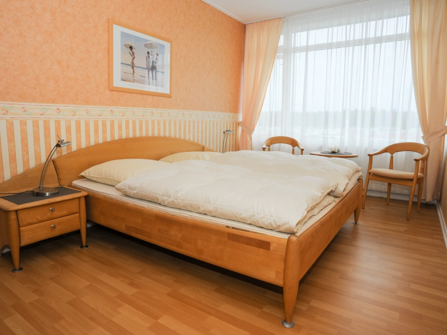 De open keuken is ingericht met een koelkast met vriesvak, combimagnetron en vaatwasser. Er is een eethoek. De woonkamer is voorzien van zithoek met LCD-tv en radio/cd-speler. Er zijn twee slaapkamers met elk 1 tweepersoons bed (180x200), met individueel verstelbare bodems en 1 persoons dekbedden (135x200). De badkamer heeft een douche, wastafel en toilet en er is een apart toilet. Dit appartement heeft een balkon op het noordoosten.
