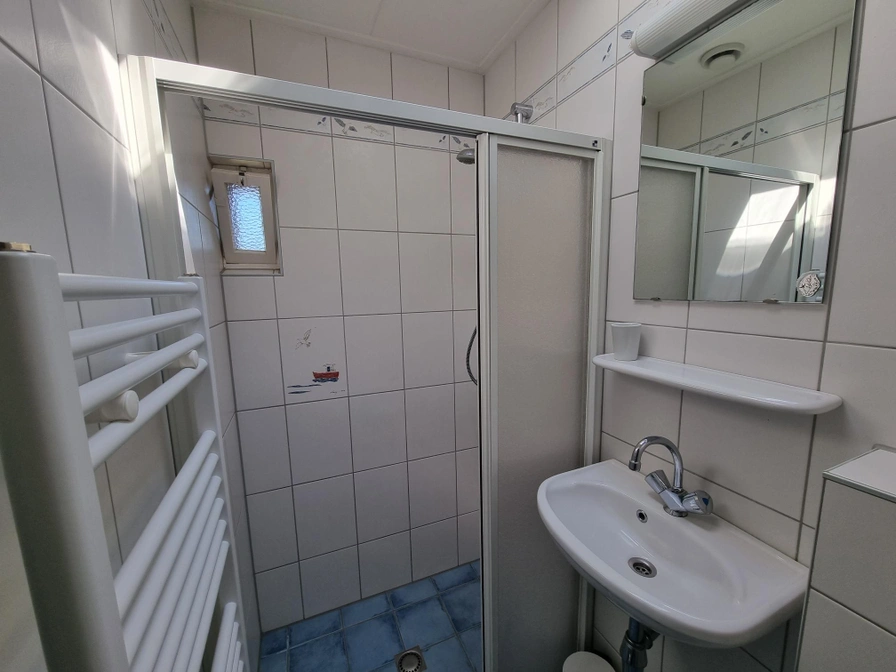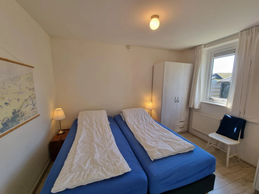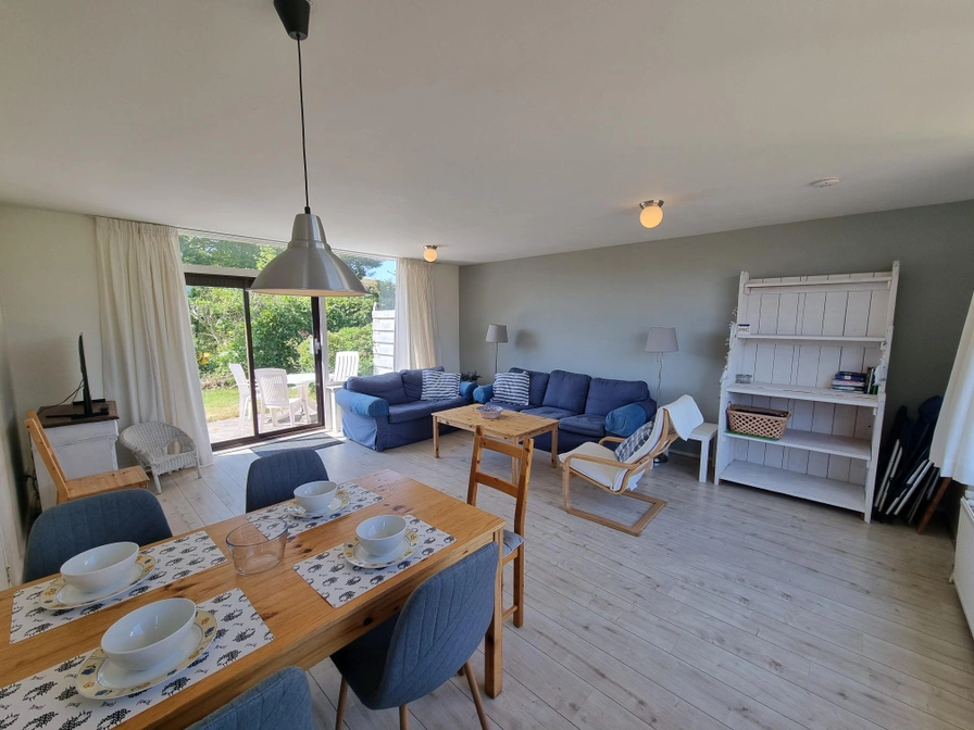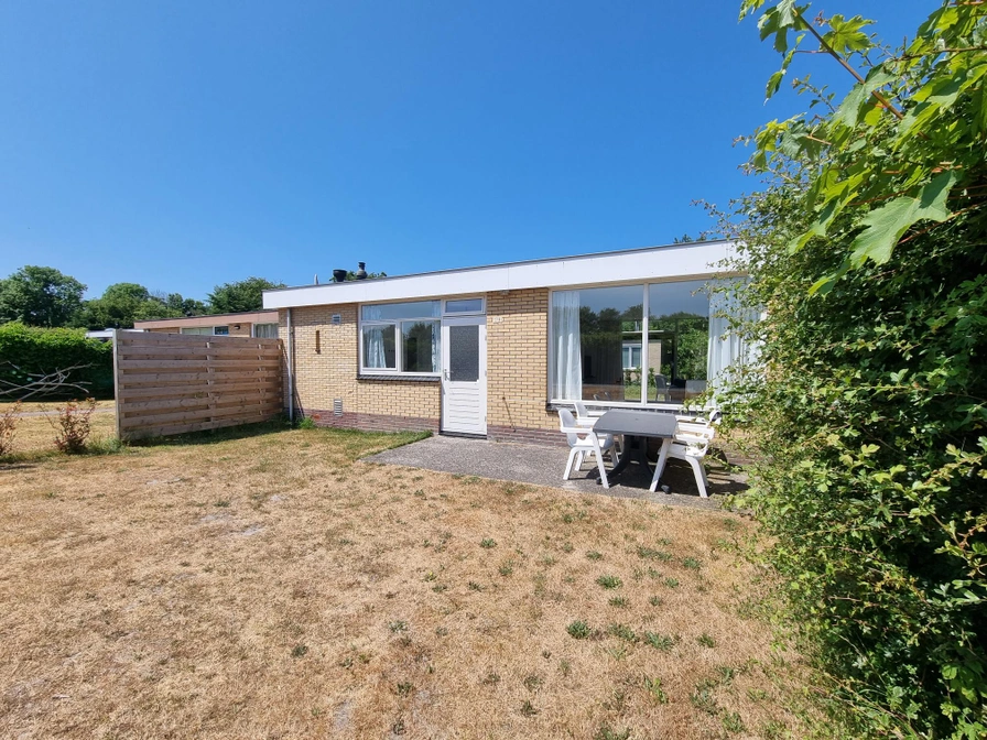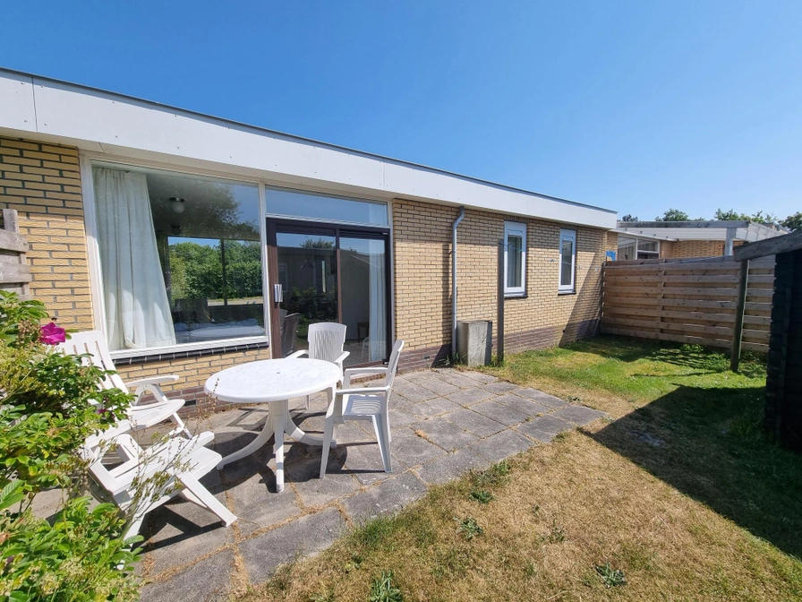 De ruime woonkamer van deze geschakelde bungalow heeft een eethoek en zithoek met tv. Keuken met vaatwasser, koelkast met vriesvak, gasfornuis, magnetron, waterkoker en een koffiezetapparaat. De grote slaapkamer met 2 eenpersoonsbedden (90x200) en wastafel is bereikbaar via de woonkamer. Tweede slaapkamer is bereikbaar via de keuken en heeft 1 eenpersoonsbed en een stapelbed (90x200 cm). Badkamer met douche, wastafel en toilet. Via de schuifdeur in de woonkamer komt je in de fijne achtertuin op het westen. Ook kun je voor de bungalow op het oosten zitten.