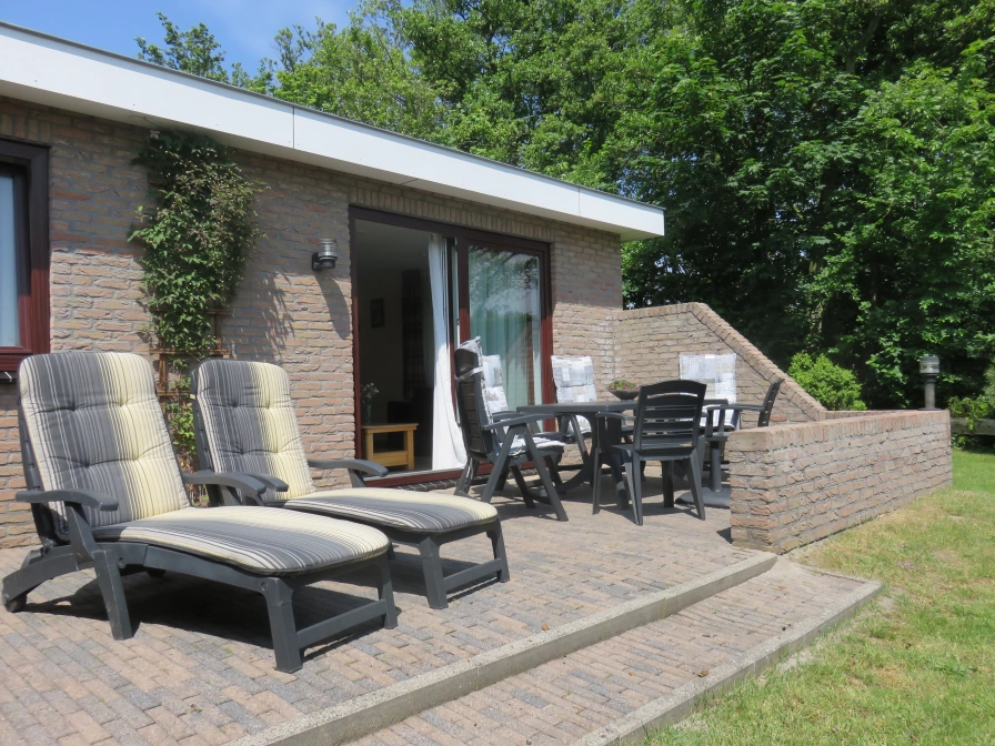 De woonkamer van deze geschakelde bungalow heeft een zithoek met flatscreen-tv en radio/cd-speler. Er is ook een eethoek. De open keuken is ingericht met een koelkast, drie laden diepvriezer, combimagnetron, vaatwasser, waterkoker en koffiezetapparaat. Er zijn twee slaapkamers met elk 2 eenpersoons boxspringbedden en een wastafel. De badkamer heeft een ligbad, aparte douche en wastafel. Er is een apart toilet. Deze bungalow heeft een royale tuin met terras op het zuiden. Tuinmeubilair is aanwezig.