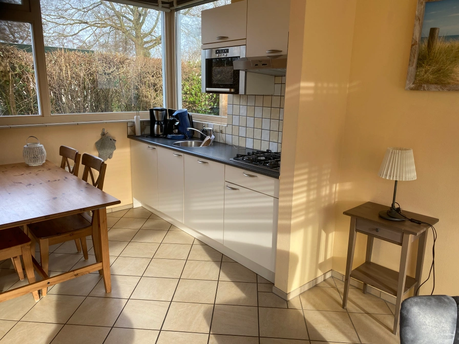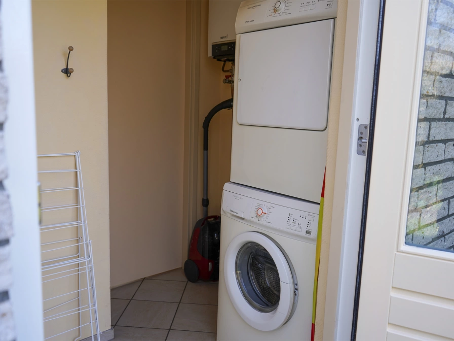 Eigen (fietsen)schuurtje, wasmachine en wasdroger. Parkeren kan direct bij de bungalow.