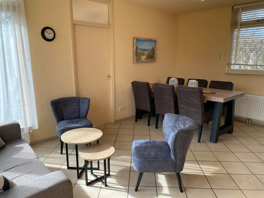 Entree, woonkamer met zithoek en eethoek. Open keuken met o.a. een vaatwasser. Slaapkamer met één tweepersoons bed (160 x 200 cm). Tweede en derde slaapkamer met elk één stapelbed (90 x 200 cm). Badkamer met douche, wastafel en toilet. Rond de bungalow beschik je over een ruim gazon met terras en tuinmeubels. Er is geen TV in de accommodatie aanwezig.