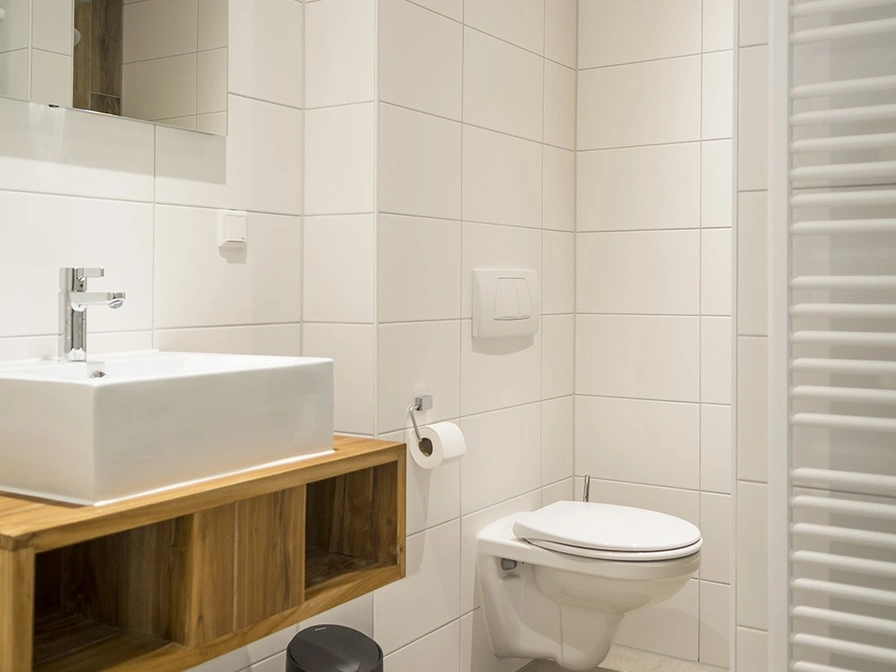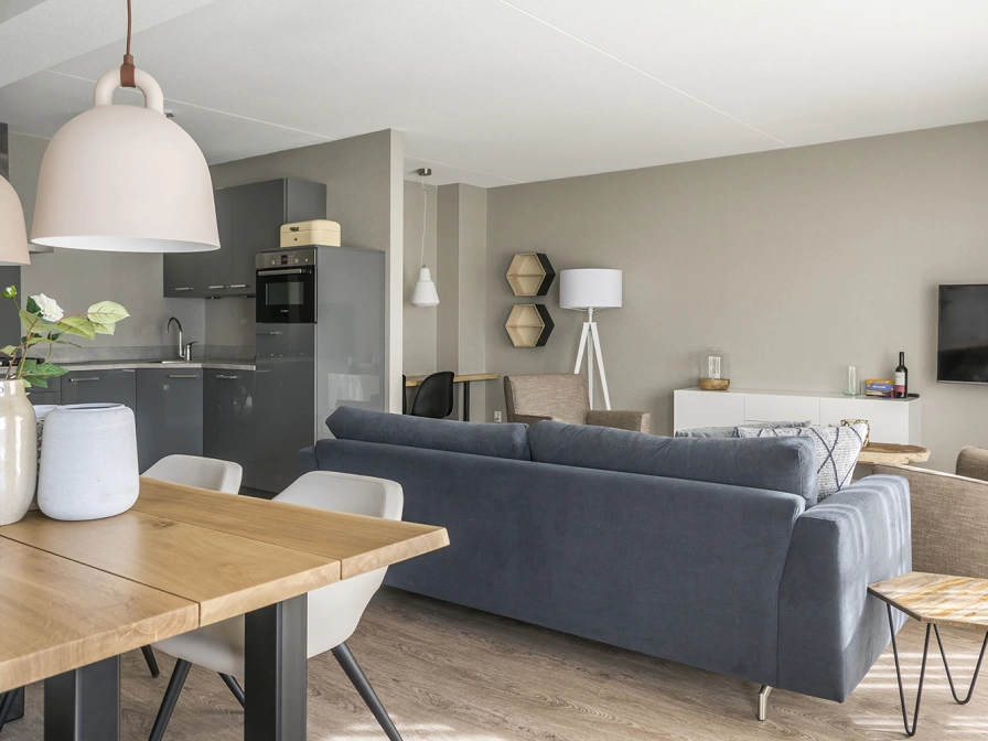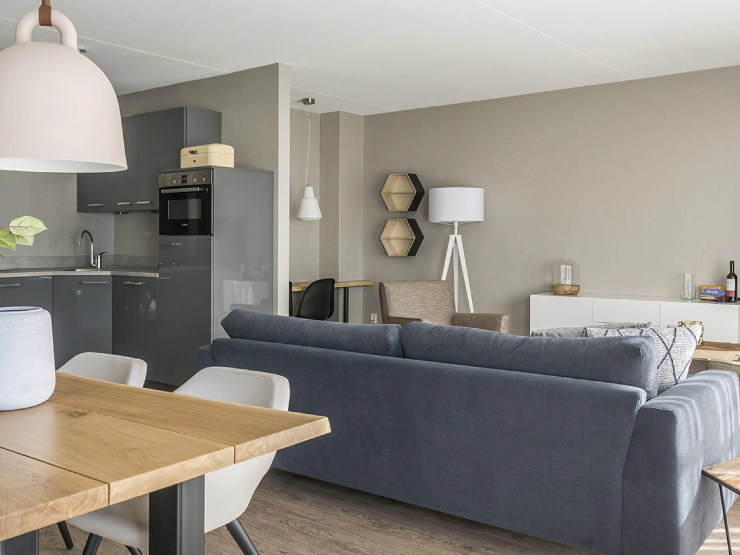 Dit appartement heeft een entree via de algemene ingang. Er is een woonkamer voorzien van zithoek met TV en een eethoek. Op de bovenverdieping zijn twee slaapkamers aanwezig met elk twee eenpersoons boxspringbedden. De badkamer is voorzien van een ligbad, douche, wastafel en toilet. De accommodatie heeft een eigen terras met open tuin.