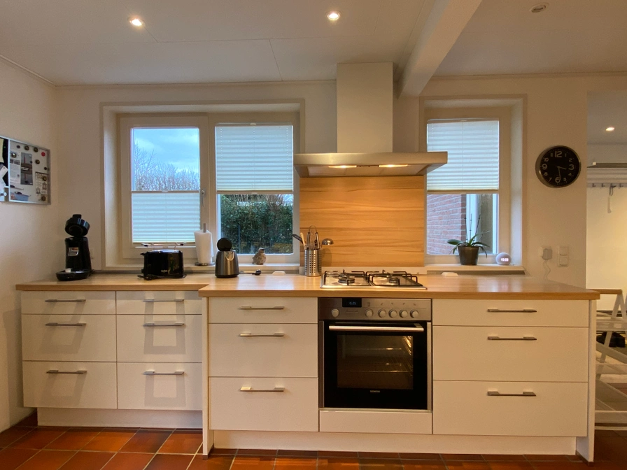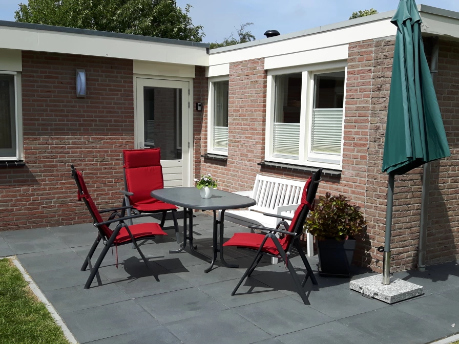 Aparte entree, woonkamer met zithoek en TV/radio/DVD. Open keuken met een mooie eethoek, koelkast met vriezer, oven, magnetron, vaatwasser en koffiezetapparaat, Senseo, broodrooster en waterkoker. Er zijn drie slaapkamers, een met een tweepersoonsbed (160 x 200 met twee matrassen) en tv, een met 2 eenpersoons boxspringbedden, de derde heeft een eenpersoonsbed. In de berging staat een wasmachine en droger. De bungalow heeft een omheinde tuin met 2 zonnige terrassen en tuinmeubelen, een tuinhuisje voor fietsen en strandspullen. Parkeerplaats voor twee auto's voor het huis.