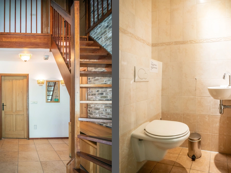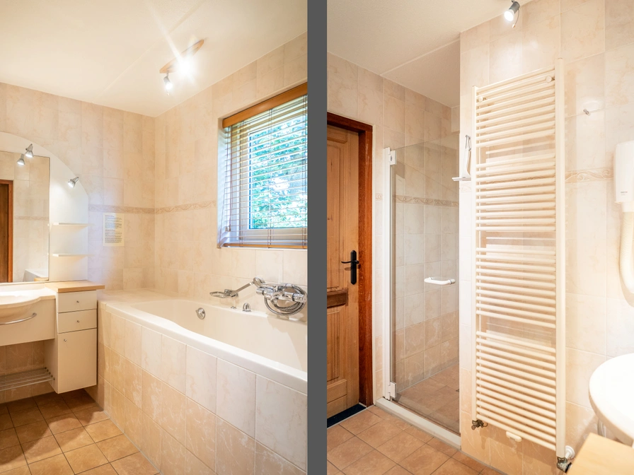 De woonkamer van dit vakantiehuis heeft een zithoek met sfeerhaard (gas), flatscreen tv, radio en dvd/cd-speler. De open keuken is ingericht met grillbakoven, magnetron, koelkast met vriesvak, vaatwasser, koffiezetapparaat, Senseo, broodrooster, citruspers, staafmixer en waterkoker. Er is ook een ruime eethoek. Er is een slaapkamer met 2 eenpersoons boxspringbedden en flatscreen-tv. Aangrenzend ligt een badkamer met whirlpool, aparte douche en badkamermeubel. In de hal is een apart toilet. In de berging staan een wasmachine en droger. Op de bovenverdieping zijn twee slaapkamers met 2 eenpersoons boxspringbedden en flatscreen-tv. Een van de slaapkamers heeft een balkon. De badkamer heeft een tweepersoons stoomcabine/douche, badkamermeubel en toilet. Deze villa heeft een tuin met twee terrassen waarvan een op het zuiden. Tuinmeubilair aanwezig.