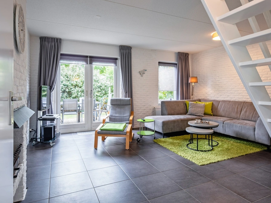 Entree. Je stapt binnen in een gezellige woonkamer met een comfortabele zithoek met tv en een ruime eethoek. De open keuken is volledig uitgerust met een vaatwasser, magnetron, koelkast en koffiezetapparaat. Op de begane grond bevindt zich een slaapkamer met twee eenpersoonsbedden en een badkamer met douche, wastafel en toilet. Op de bovenverdieping liggen nog twee slaapkamers, beide voorzien van twee eenpersoonsbedden. Buiten geniet je van een ruime tuin met patio, compleet met tuinmeubilair om heerlijk te ontspannen.