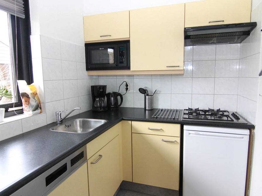 Entree. Je stapt binnen in een gezellige woonkamer met een comfortabele zithoek met tv en een ruime eethoek. De open keuken is volledig uitgerust met een vaatwasser, magnetron, koelkast en koffiezetapparaat. Op de begane grond bevindt zich een slaapkamer met twee eenpersoonsbedden en een badkamer met douche, wastafel en toilet. Op de bovenverdieping liggen nog twee slaapkamers, beide voorzien van twee eenpersoonsbedden. Buiten geniet je van een ruime tuin met patio, compleet met tuinmeubilair om heerlijk te ontspannen.