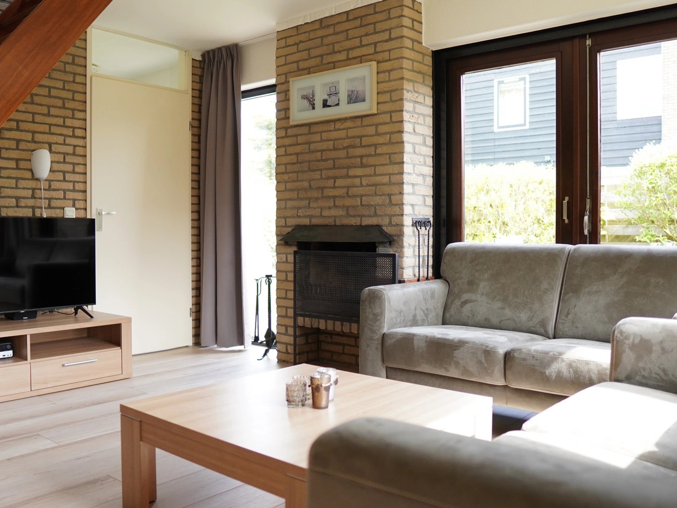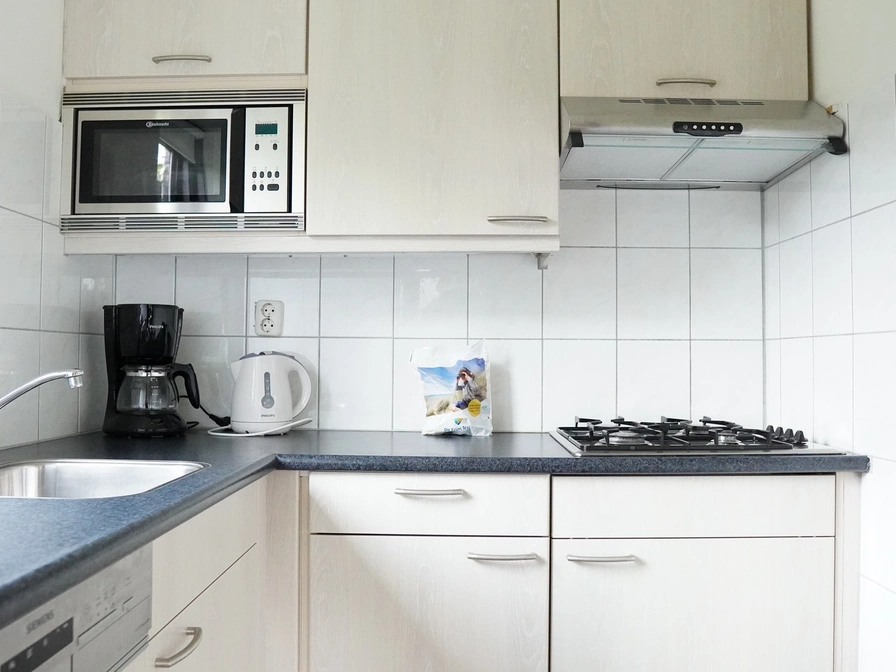Entree. De woonkamer beschikt over een comfortabele zithoek met tv en een gezellige eethoek. De halfopen keuken is volledig uitgerust met een vaatwasser, magnetron en koelkast. Op de begane grond bevindt zich een slaapkamer met twee eenpersoonsbedden en een badkamer met douche, wastafel en toilet. Op de bovenverdieping is een tweede slaapkamer, eveneens met twee eenpersoonsbedden. Dit vrijstaande vakantiehuis heeft een ruime tuin met een patio en terras, voorzien van tuinmeubilair zodat je heerlijk buiten kunt genieten.