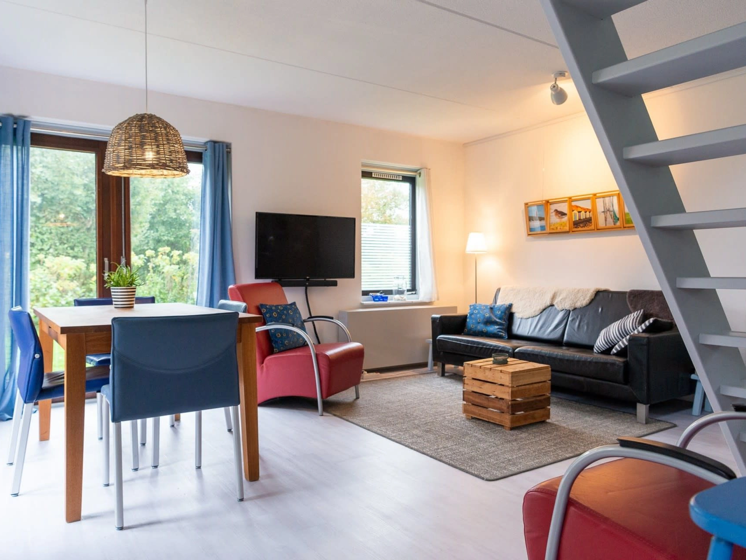 Entree. De woonkamer beschikt over een comfortabele zithoek met tv en een gezellige eethoek. De halfopen keuken is volledig uitgerust met een vaatwasser, magnetron en koelkast. Op de begane grond bevindt zich een slaapkamer met twee eenpersoonsbedden en een badkamer met douche, wastafel en toilet. Op de bovenverdieping is een tweede slaapkamer, eveneens met twee eenpersoonsbedden. Dit vrijstaande vakantiehuis heeft een ruime tuin met een patio en terras, voorzien van tuinmeubilair zodat je heerlijk buiten kunt genieten.