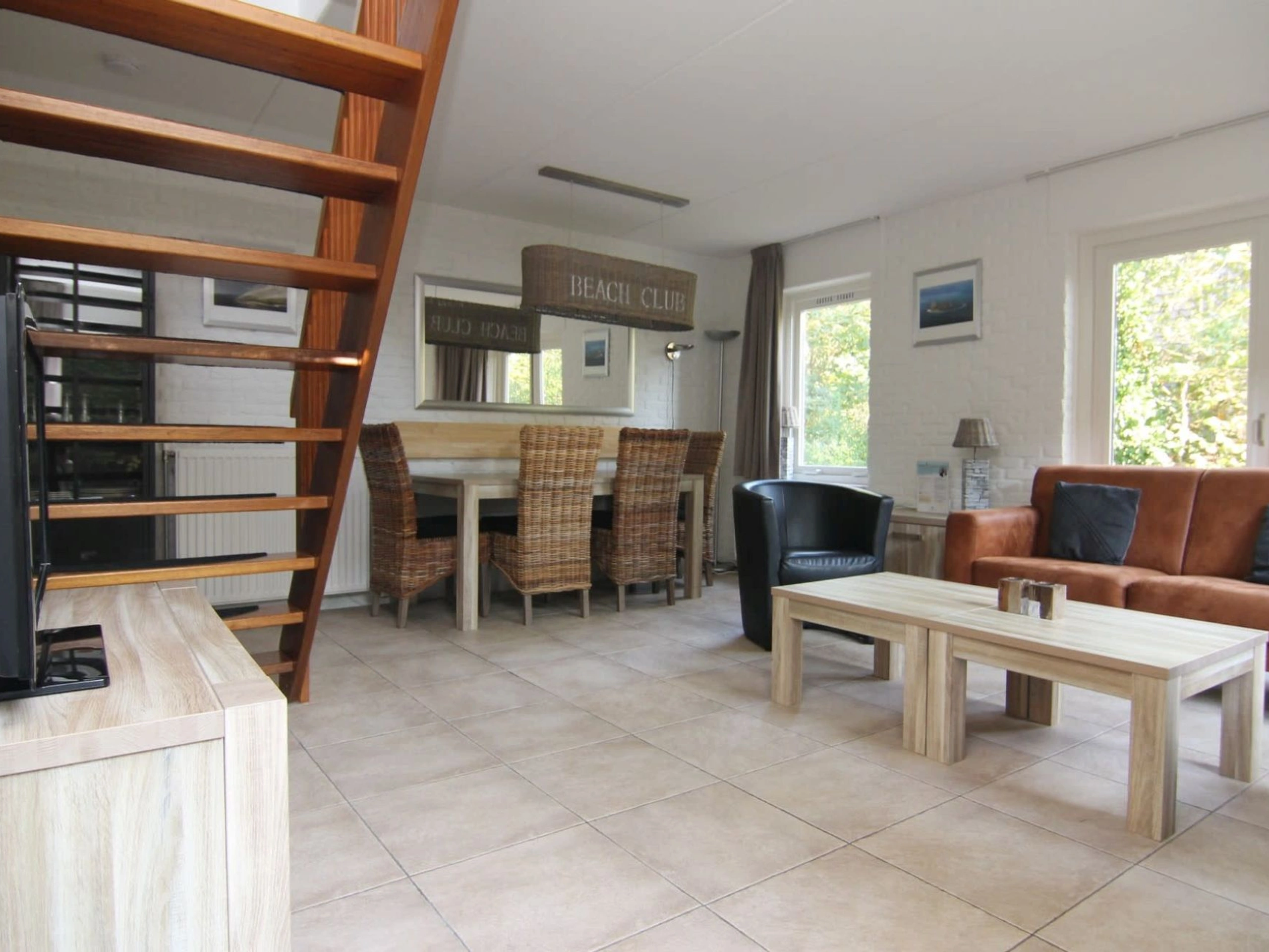 Entree. De woonkamer beschikt over een comfortabele zithoek met tv en een gezellige eethoek. De halfopen keuken is volledig uitgerust met een vaatwasser, magnetron en koelkast. Op de begane grond bevindt zich een slaapkamer met twee eenpersoonsbedden en een badkamer met douche, wastafel en toilet. Op de bovenverdieping is een tweede slaapkamer, eveneens met twee eenpersoonsbedden. Dit vrijstaande vakantiehuis heeft een ruime tuin met een patio en terras, voorzien van tuinmeubilair zodat je heerlijk buiten kunt genieten.