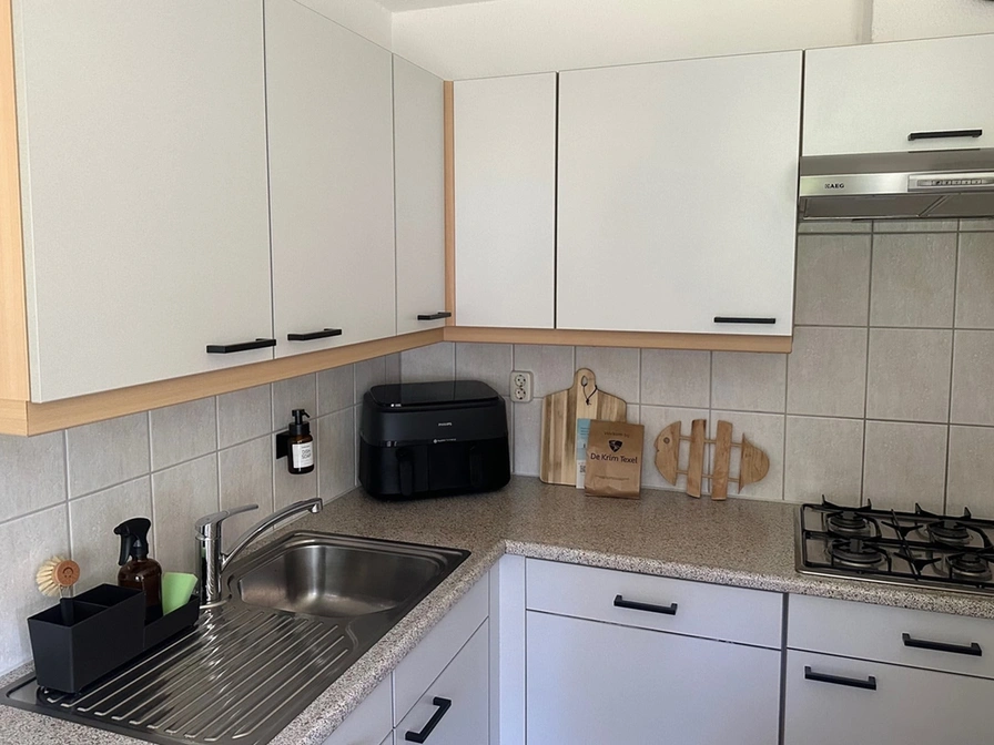 Entree. Je komt binnen in een sfeervolle woonkamer met een comfortabele zithoek en tv. Aansluitend vind je de eethoek met daarnaast de halfopen keuken, die is uitgerust met een vaatwasser, magnetron en koelkast. Op de begane grond van dit vrijstaande vakantiehuis bevindt zich een slaapkamer met twee eenpersoonsbedden en een badkamer met douche, wastafel en toilet. Op de bovenverdieping liggen nog twee slaapkamers, beide voorzien van twee eenpersoonsbedden. Je beschikt over een ruime tuin met terras, compleet met tuinmeubilair. Daarnaast is er een kleine fietsenberging aanwezig.