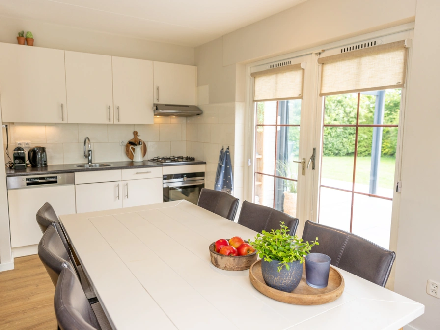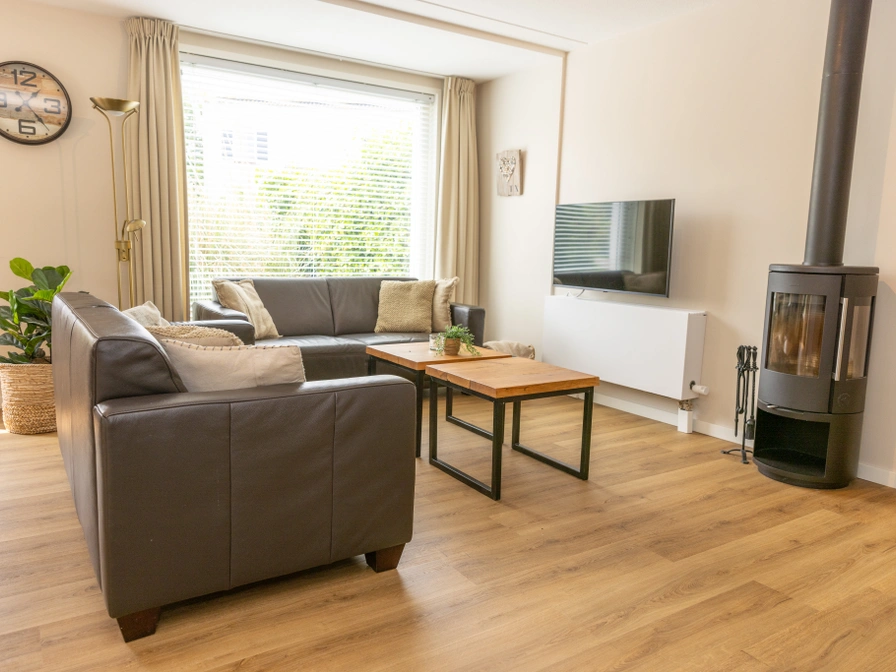 Bij binnenkomst stap je een sfeervolle woonkamer binnen met een comfortabele zithoek, open haard en tv. Aangrenzend vind je de eethoek en de open keuken, die is uitgerust met een vaatwasser, magnetron en koelkast. Dit geschakelde vakantiehuis beschikt over drie slaapkamers, waarvan er minimaal één is voorzien van twee eenpersoonsbedden. De badkamer is uitgerust met een douche, wastafel en toilet. Op de bovenverdieping bevinden zich nog twee slaapkamers, beide met twee eenpersoonsbedden. Je beschikt over een ruime tuin met terras en tuinmeubilair zodat je ook buiten heerlijk kunt ontspannen.