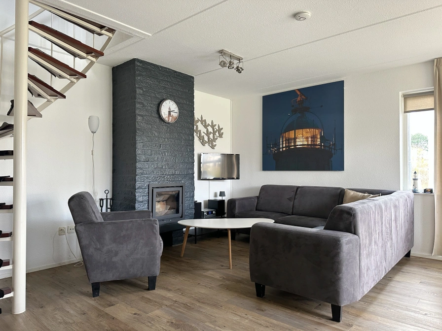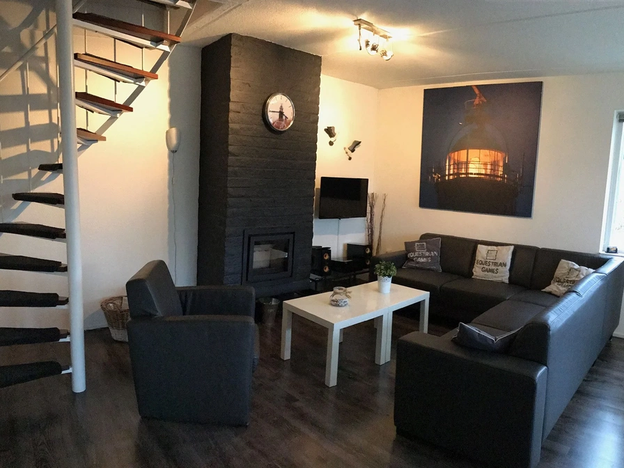 Bij binnenkomst stap je een sfeervolle woonkamer binnen met een comfortabele zithoek, open haard en tv. Aangrenzend vind je de eethoek en de open keuken, die is uitgerust met een vaatwasser, magnetron en koelkast. Dit geschakelde vakantiehuis beschikt over drie slaapkamers, waarvan er minimaal één is voorzien van twee eenpersoonsbedden. De badkamer is uitgerust met een douche, wastafel en toilet. Op de bovenverdieping bevinden zich nog twee slaapkamers, beide met twee eenpersoonsbedden. Je beschikt over een ruime tuin met terras en tuinmeubilair zodat je ook buiten heerlijk kunt ontspannen.