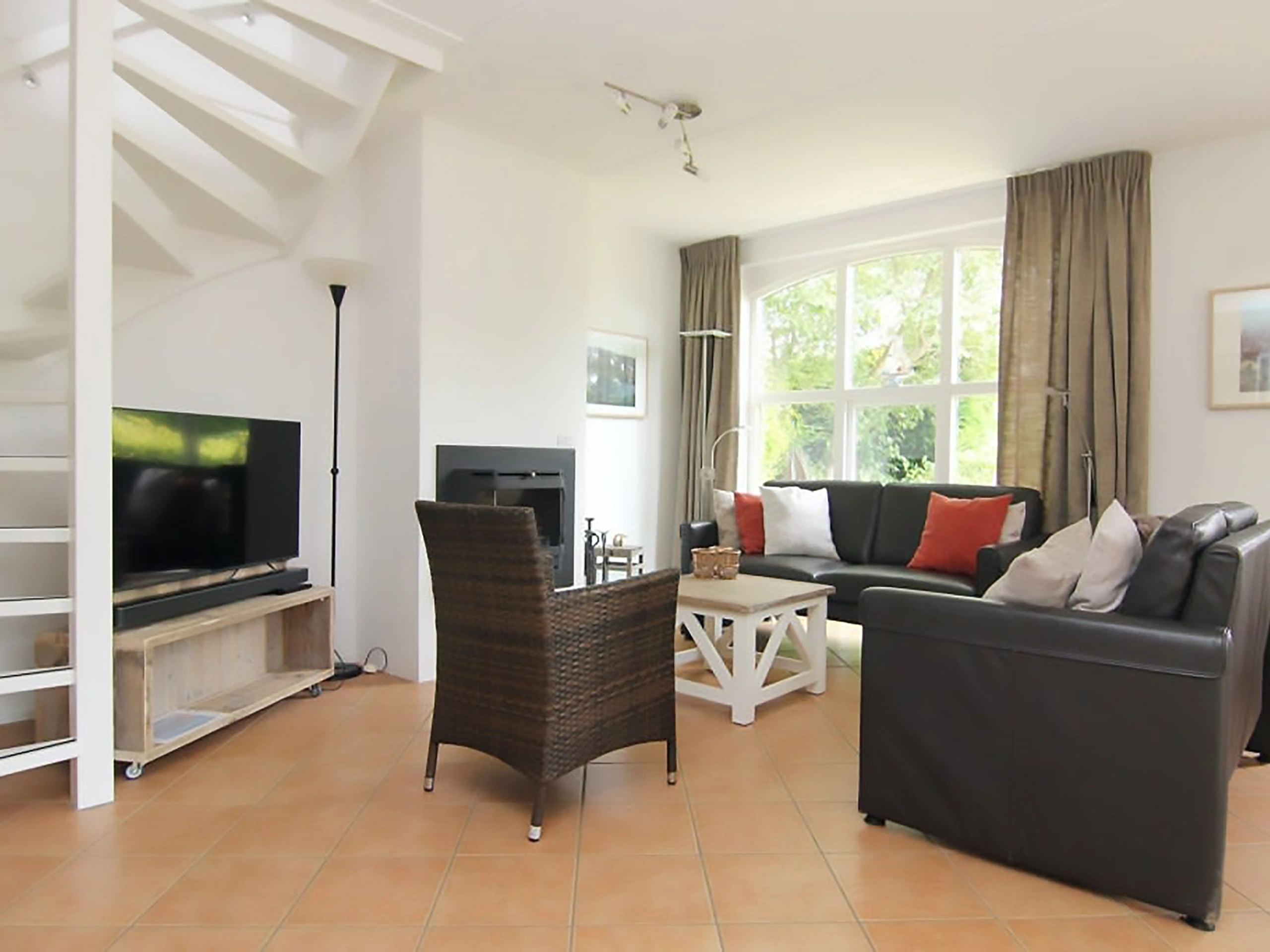 Bij binnenkomst stap je een sfeervolle woonkamer binnen met een comfortabele zithoek, open haard en tv. Aangrenzend vind je de eethoek en de open keuken, die is uitgerust met een vaatwasser, magnetron en koelkast. Dit geschakelde vakantiehuis beschikt over drie slaapkamers, waarvan er minimaal één is voorzien van twee eenpersoonsbedden. De badkamer is uitgerust met een douche, wastafel en toilet. Op de bovenverdieping bevinden zich nog twee slaapkamers, beide met twee eenpersoonsbedden. Je beschikt over een ruime tuin met terras en tuinmeubilair zodat je ook buiten heerlijk kunt ontspannen.