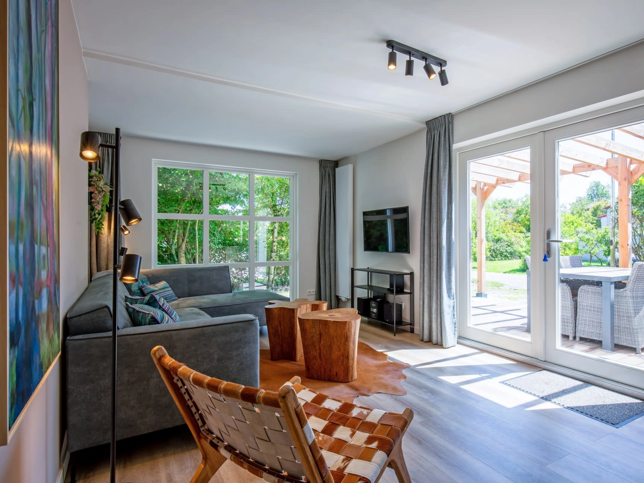 Bij binnenkomst stap je een sfeervolle woonkamer binnen met een comfortabele zithoek, open haard en tv. Aangrenzend vind je de eethoek en de open keuken, die is uitgerust met een vaatwasser, magnetron en koelkast. Dit geschakelde vakantiehuis beschikt over drie slaapkamers, waarvan er minimaal één is voorzien van twee eenpersoonsbedden. De badkamer is uitgerust met een douche, wastafel en toilet. Op de bovenverdieping bevinden zich nog twee slaapkamers, beide met twee eenpersoonsbedden. Je beschikt over een ruime tuin met terras en tuinmeubilair zodat je ook buiten heerlijk kunt ontspannen.