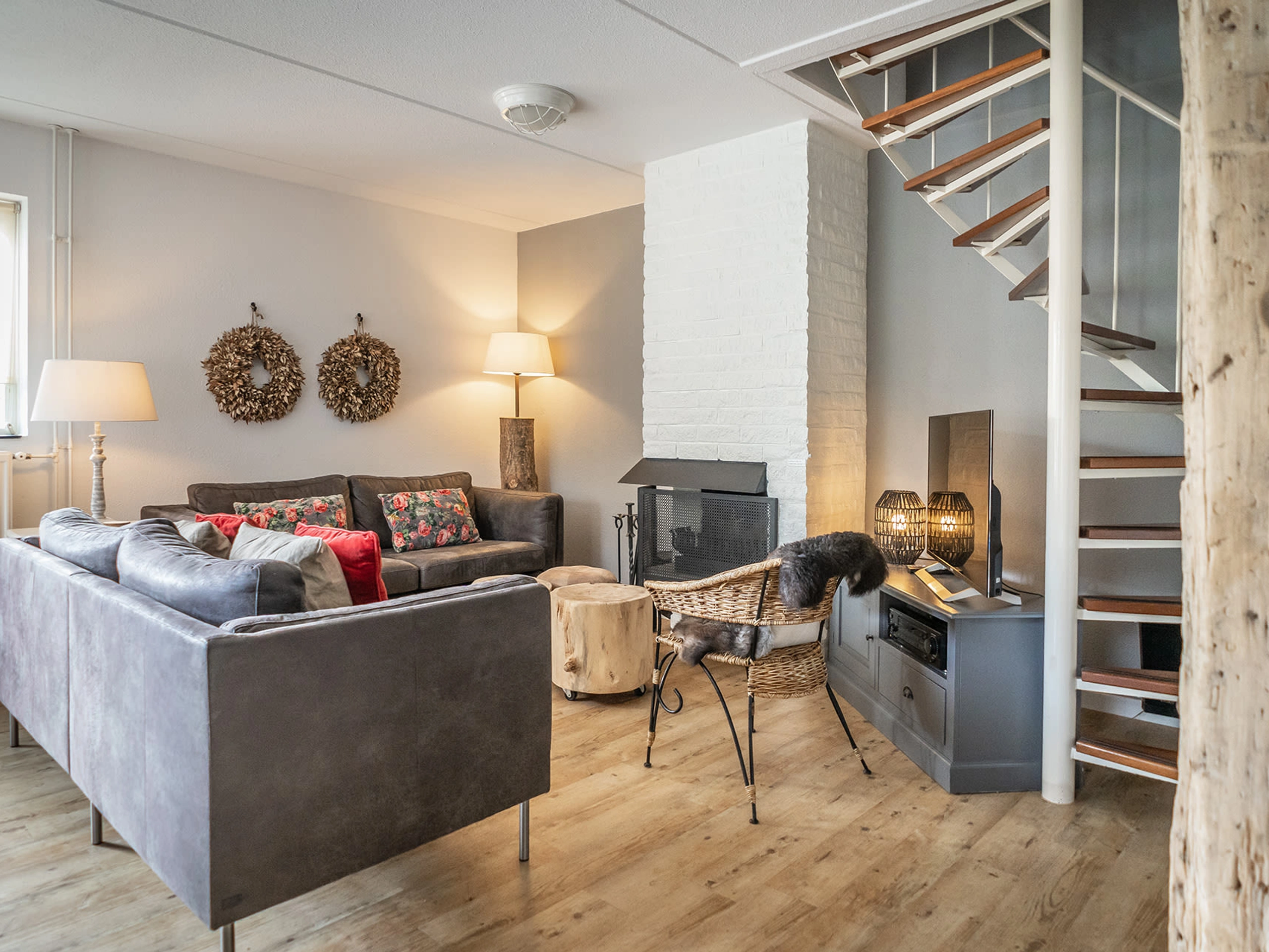 Bij binnenkomst stap je een sfeervolle woonkamer binnen met een comfortabele zithoek, open haard en tv. Aangrenzend vind je de eethoek en de open keuken, die is uitgerust met een vaatwasser, magnetron en koelkast. Dit geschakelde vakantiehuis beschikt over drie slaapkamers, waarvan er minimaal één is voorzien van twee eenpersoonsbedden. De badkamer is uitgerust met een douche, wastafel en toilet. Op de bovenverdieping bevinden zich nog twee slaapkamers, beide met twee eenpersoonsbedden. Je beschikt over een ruime tuin met terras en tuinmeubilair zodat je ook buiten heerlijk kunt ontspannen.