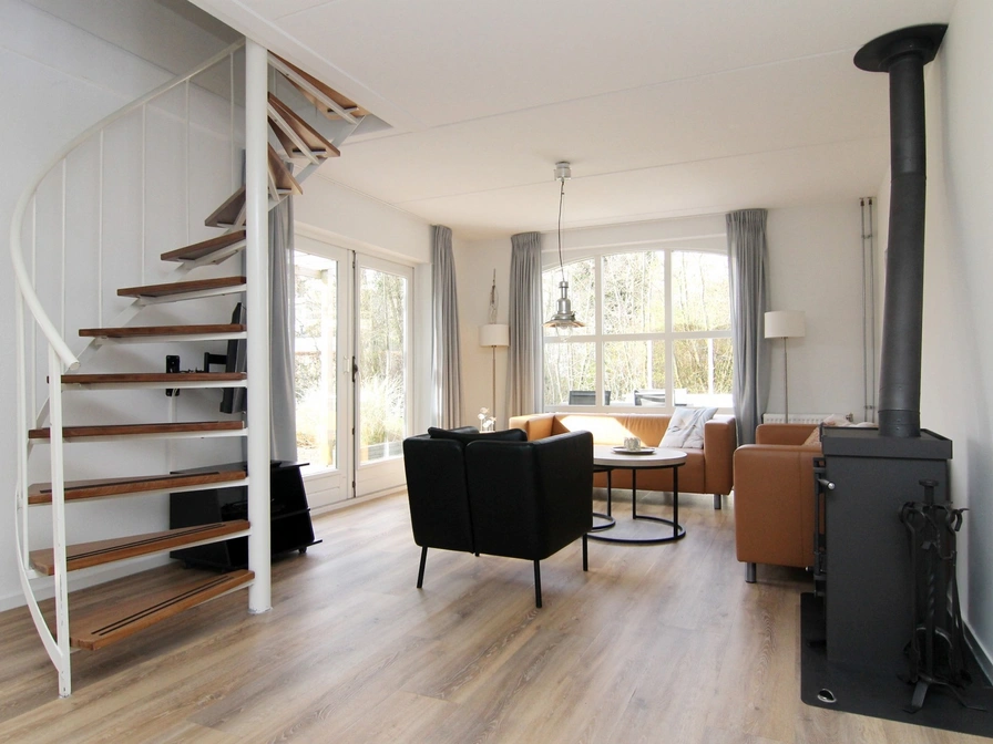 Entree, gezellige woonkamer met een comfortabele zithoek en tv en een fijne eethoek. De keuken is praktisch ingericht en voorzien van een vaatwasser, magnetron en koelkast. Op de begane grond bevindt zich een slaapkamer met twee eenpersoonsbedden en een badkamer met douche, wastafel en toilet. Op de bovenverdieping liggen nog twee slaapkamers, beide uitgerust met twee eenpersoonsbedden. Buiten beschikt dit vrijstaande vakantiehuis over een ruime tuin met terras, waar je kunt ontspannen op het aanwezige tuinmeubilair.