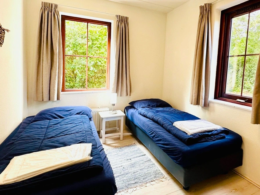 Entree, gezellige woonkamer met een comfortabele zithoek en tv en een fijne eethoek. De keuken is praktisch ingericht en voorzien van een vaatwasser, magnetron en koelkast. Op de begane grond bevindt zich een slaapkamer met twee eenpersoonsbedden en een badkamer met douche, wastafel en toilet. Op de bovenverdieping liggen nog twee slaapkamers, beide uitgerust met twee eenpersoonsbedden. Buiten beschikt dit vrijstaande vakantiehuis over een ruime tuin met terras, waar je kunt ontspannen op het aanwezige tuinmeubilair.