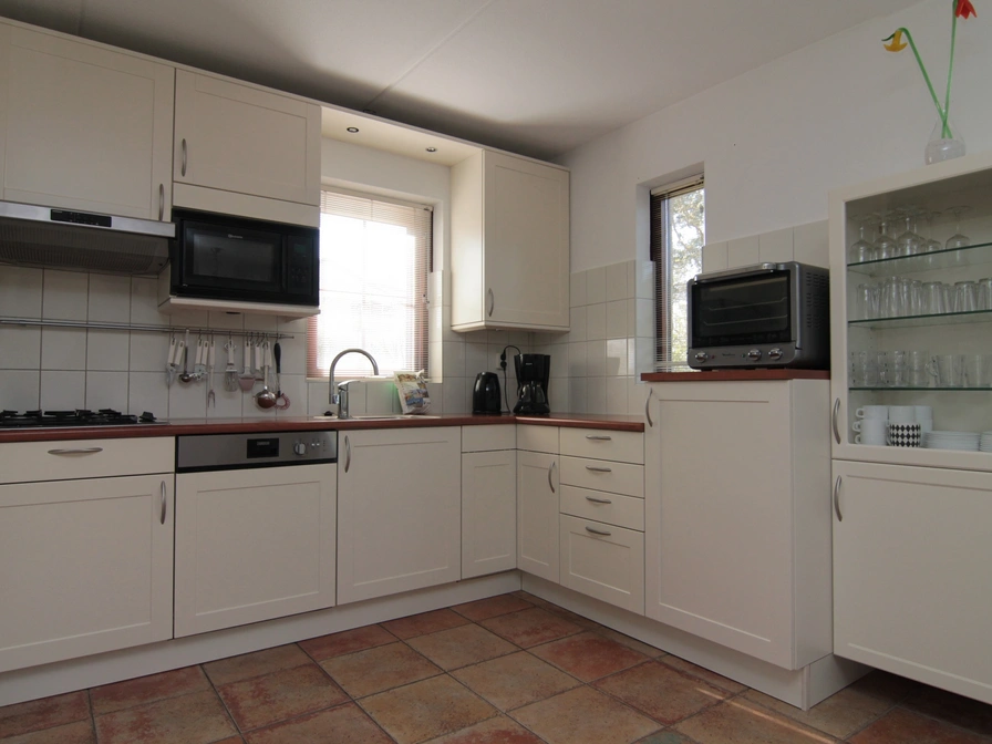 Entree, gezellige woonkamer met een comfortabele zithoek en tv en een fijne eethoek. De keuken is praktisch ingericht en voorzien van een vaatwasser, magnetron en koelkast. Op de begane grond bevindt zich een slaapkamer met twee eenpersoonsbedden en een badkamer met douche, wastafel en toilet. Op de bovenverdieping liggen nog twee slaapkamers, beide uitgerust met twee eenpersoonsbedden. Buiten beschikt dit vrijstaande vakantiehuis over een ruime tuin met terras, waar je kunt ontspannen op het aanwezige tuinmeubilair.