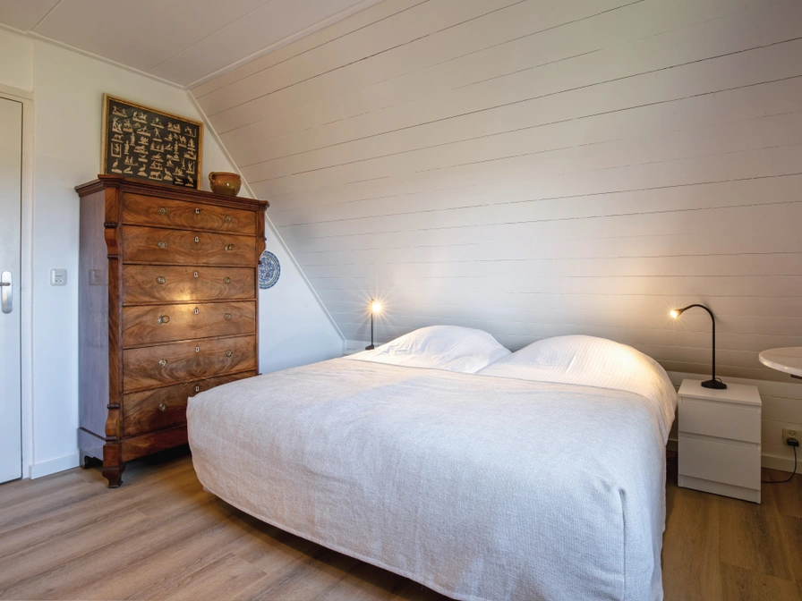 Woonkamer met zithoek, TV en schuifpui naar het terras. De open keuken is voorzien van vaatwasser, filterkoffiezetapparaat en Nespresso. Badkamer met ligbad en toilet op de begane grond. Op de 1e etage bevinden zich 2 slaapkamers met elk twee eenpersoons bedden (90 x 200) en een badkamer met douche en toilet. De ramen zijn voorzien van horren. Grote tuin met terras op het zuiden met tuinmeubilair. Picknicktafel in de tuin. In de royale tuin is altijd een fijn plekje in de zon of de schaduw te vinden.