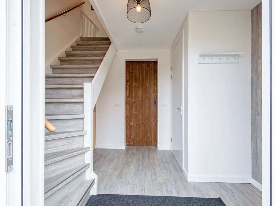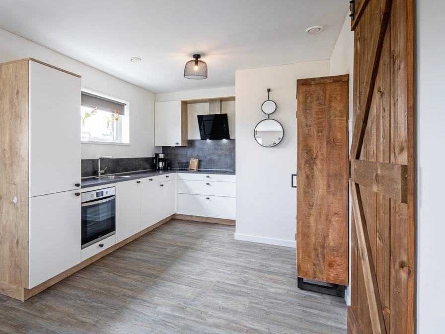 De moderne woonkamer is voorzien van een smart TV en pellethaard. Er is een eethoek met een gezellige ronde eettafel voor vier personen. De open keuken is uitgerust met een inductiekookplaat, koelkast met vriesvak, oven, vaatwasser, Nespresso en filter koffiezetapparaat. In de hal bevindt zich een separaat toilet. Op de bovenverdieping zijn twee slaapkamers. De “masterbedroom” is zeer ruim met openslaande deuren met ieder een Frans balkon. Deze slaapkamer heeft twee eenpersoons boxspringbedden met een tweepersoons topdekmatras. De tweede slaapkamer heeft ook twee eenpersoons boxspringbedden. De ruime badkamer is voorzien van een ligbad, inloopdouche, wastafel en toilet. Dit vakantiehuis heeft een zonnige tuin met een terras op het zuiden met een heerlijke overkapping. Vanuit de woonkamer loopt je via de schuifpui direct het terras met overkapping op. Het terras en de ruime tuin liggen op het zuiden. Tuinmeubilair en een parasol is aanwezig.