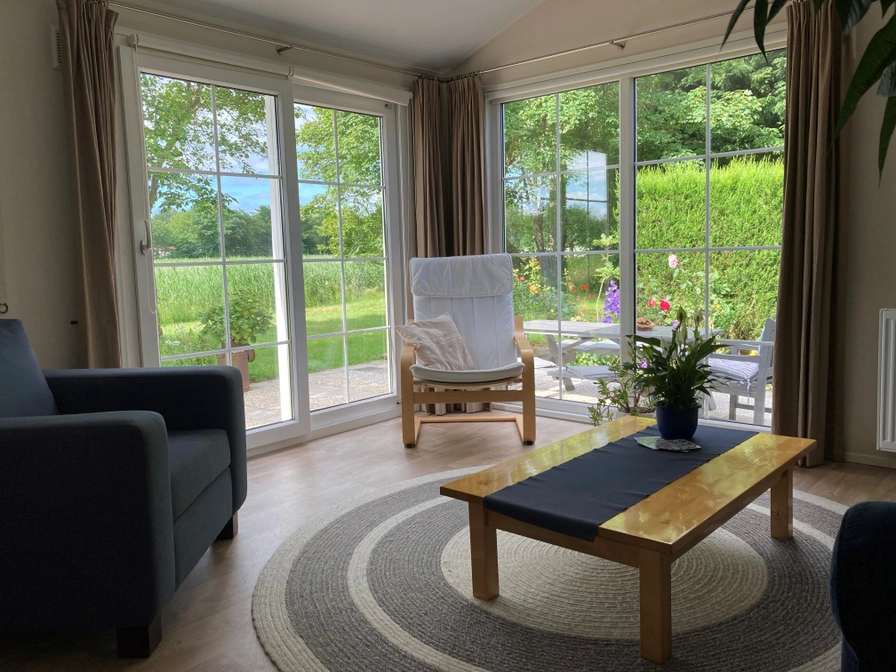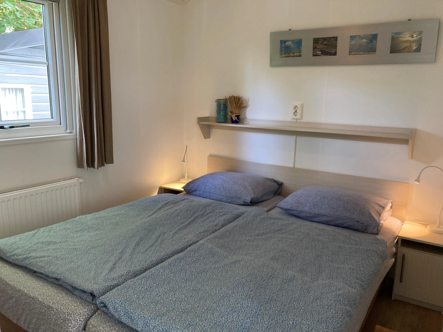 De woonkamer van dit chalet heeft een zithoek en eethoek met kabel-tv. De open keuken is ingericht met vaatwasser, combimagnetron en koelkast. Er zijn twee slaapkamers met elk 2 eenpersoons boxspringbedden (80x200). De badkamer heeft een douche, wastafel en toilet. Dit chalet heeft een tuin met ruim terras. Tuinmeubilair is aanwezig.